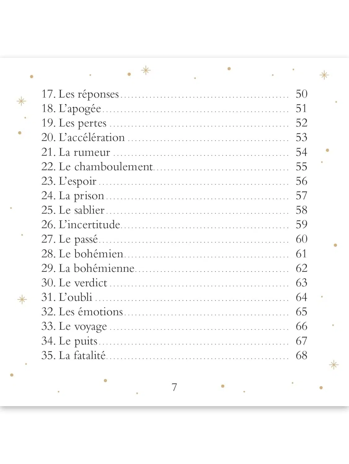 Mais en plus de l'esthétique des cartes, elles proposent un concept unique et très riche de sens : la signification de chacune est nuancée en fonction du coin par laquelle vous l'attrapez. A savoir, soit sous le symbole de l'impermanence (une énergie incertaine), soit celui de la protection (énergie puissante), du blocage (à l'arrêt), ou de la lumière (énergie accompagnatrice). Ces modulations riche de sens ajoutent une approche intuitive inédite, tout en étant développée dans le livret par Stéphanie Abellan.