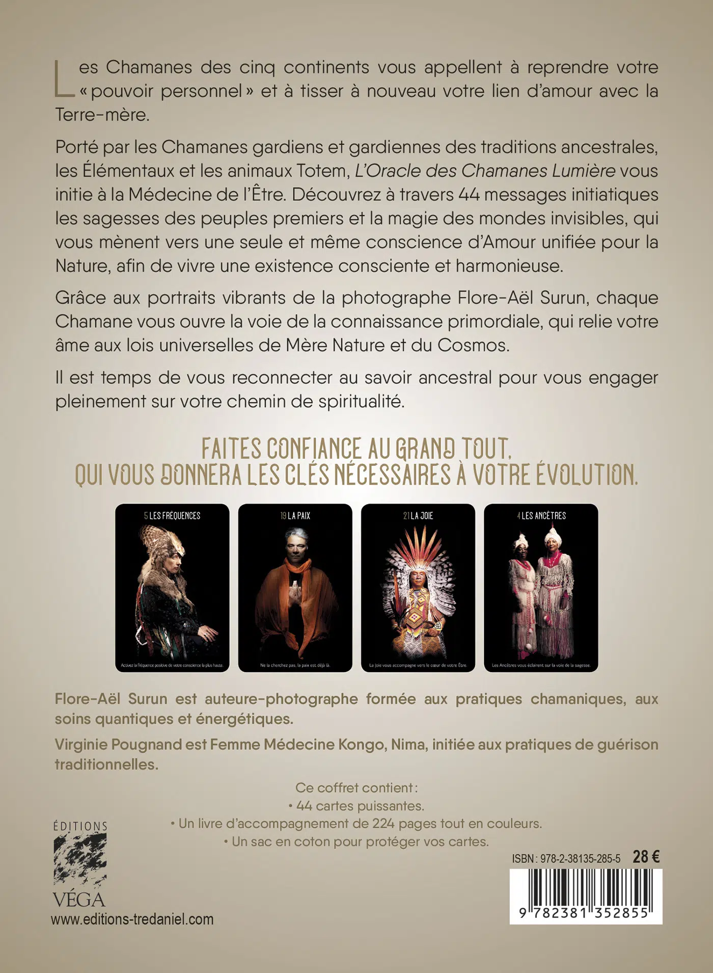 Porté par les Chamanes gardiens et gardiennes des traditions ancestrales, les Élémentaux et les animaux Totem, L’Oracle des Chamanes Lumière vous initie à la Médecine de l’Être. Découvrez à travers 44 messages initiatiques les sagesses des peuples premiers et la magie des mondes invisibles, qui vous mènent vers une seule et même conscience d’Amour unifiée pour la Nature, afin de vivre une existence consciente et harmonieuse.