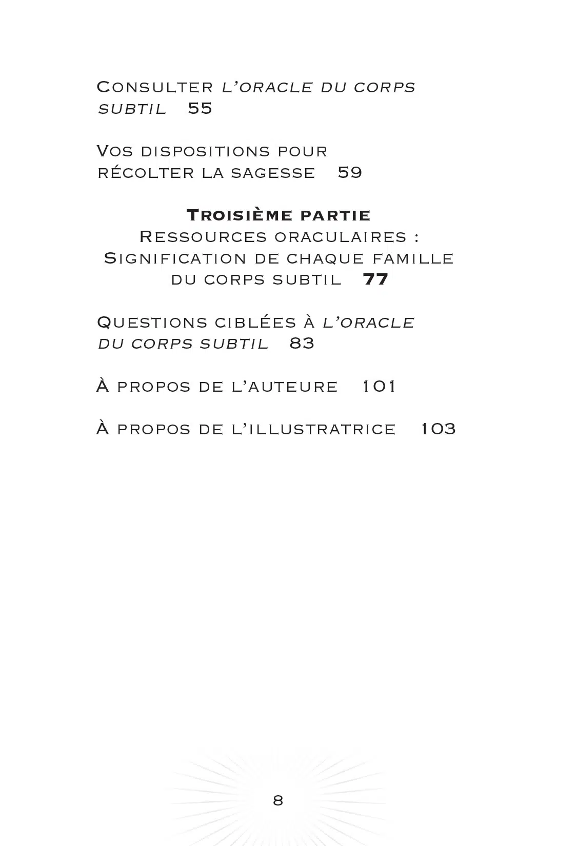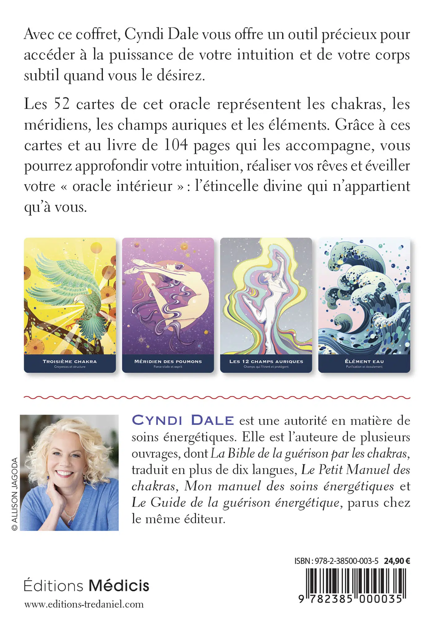 Les 52 cartes de cet oracle représentent les chakras, les méridiens, les champs auriques et les éléments. Grâce à ces cartes et au livre de 104 pages qui les accompagne, vous pourrez approfondir votre intuition, réaliser vos rêves et éveiller votre « oracle intérieur » : l’étincelle divine qui n’appartient qu’à vous.
