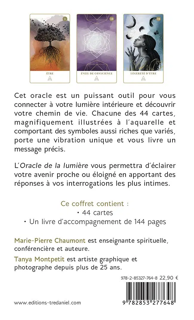 Cet oracle est un puissant outil pour vous connecter à votre lumière intérieure et découvrir votre chemin de vie. Chacune des 44 cartes, magnifiquement illustrées à l'aquarelle et comportant des symboles aussi riches que variés, porte une vibration unique et vous livre un message précis.