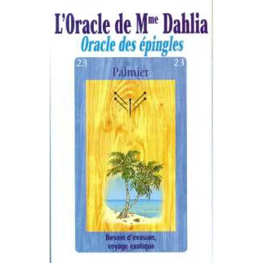Ainsi, L'oracle des épingles de Madame Dahlia est une réminiscence d'une jeunesse passée en Polynésie, à Tahiti. Grâce à ce jeu, vous accèderez aux secrets qui lui ont été dévoilés et qui vous permettrons de développer votre intuition et votre approche avec l'au-delà et ses guides spirituels. Une onde de forme se dégage du positionnement des épingles, canalisant ainsi toute votre attention.