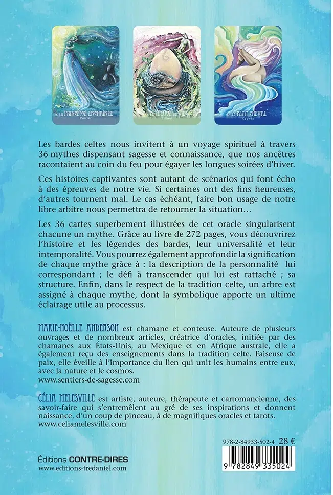 Les 36 cartes superbement illustrées de cet oracle singularisent chacune un mythe. Grâce au livre de 272 pages, vous découvrirez l'histoire et les légendes des bardes, leur universalité et leur intemporalité. Vous pourrez également approfondir la signification de chaque mythe grâce à : la description de la personnalité lui correspondant . le défi à transcender qui lui est rattaché . sa structure. Enfin, dans le respect de la tradition celte, un arbre est assigné à chaque mythe, dont la symbolique apporte un ultime éclairage utile au processus.