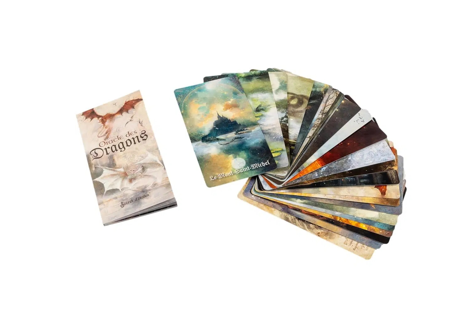 Ce jeu étonnant regroupe vingt-cinq dragons issus de toutes les traditions et mythes (la Vouivre, le Léviathan, le Basilic, Quetzalcóatl…), certains même associés à des sites sacrés (le Mont-Saint Michel, St Jacques de Compostelle), évoquant tous des symboles et messages spécifiques.