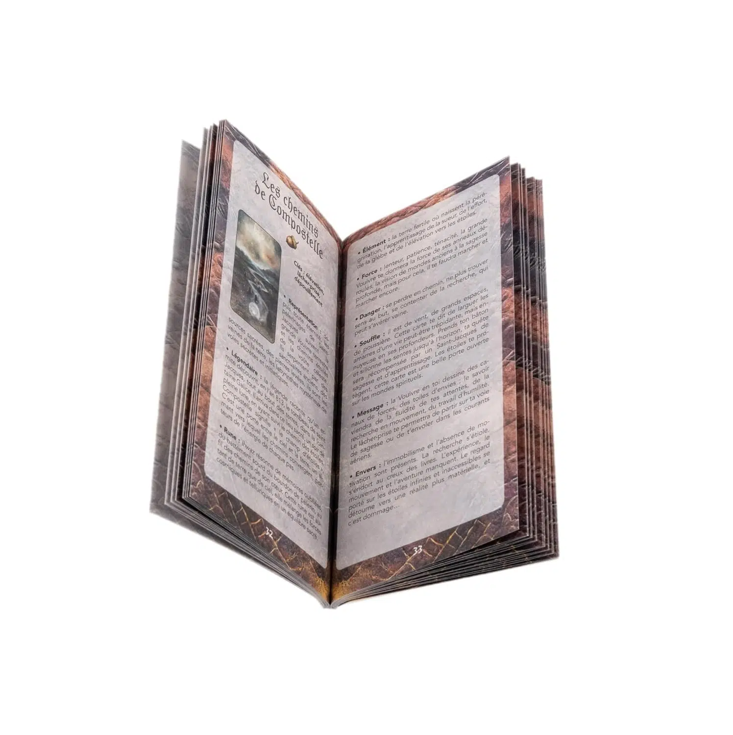 Le livret, bien que succinct, est extrêmement complet et riche en informations (une double page dédiée par carte). Il propose des explications symboliques, ainsi que diverses correspondances et nuances d’interprétations. Tout est ici fait pour se familiariser avec la diversité du monde draconique, dans sa dimension polyculturelle, voire universelle.
