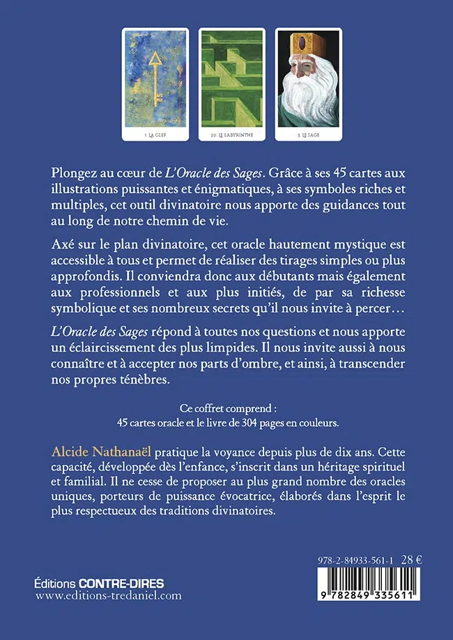 L’Oracle des Sages répond à toutes nos questions et nous apporte un éclaircissement des plus limpides. Il nous invite aussi à nous connaître et à accepter nos parts d’ombre, et ainsi, à transcender nos propres ténèbres.