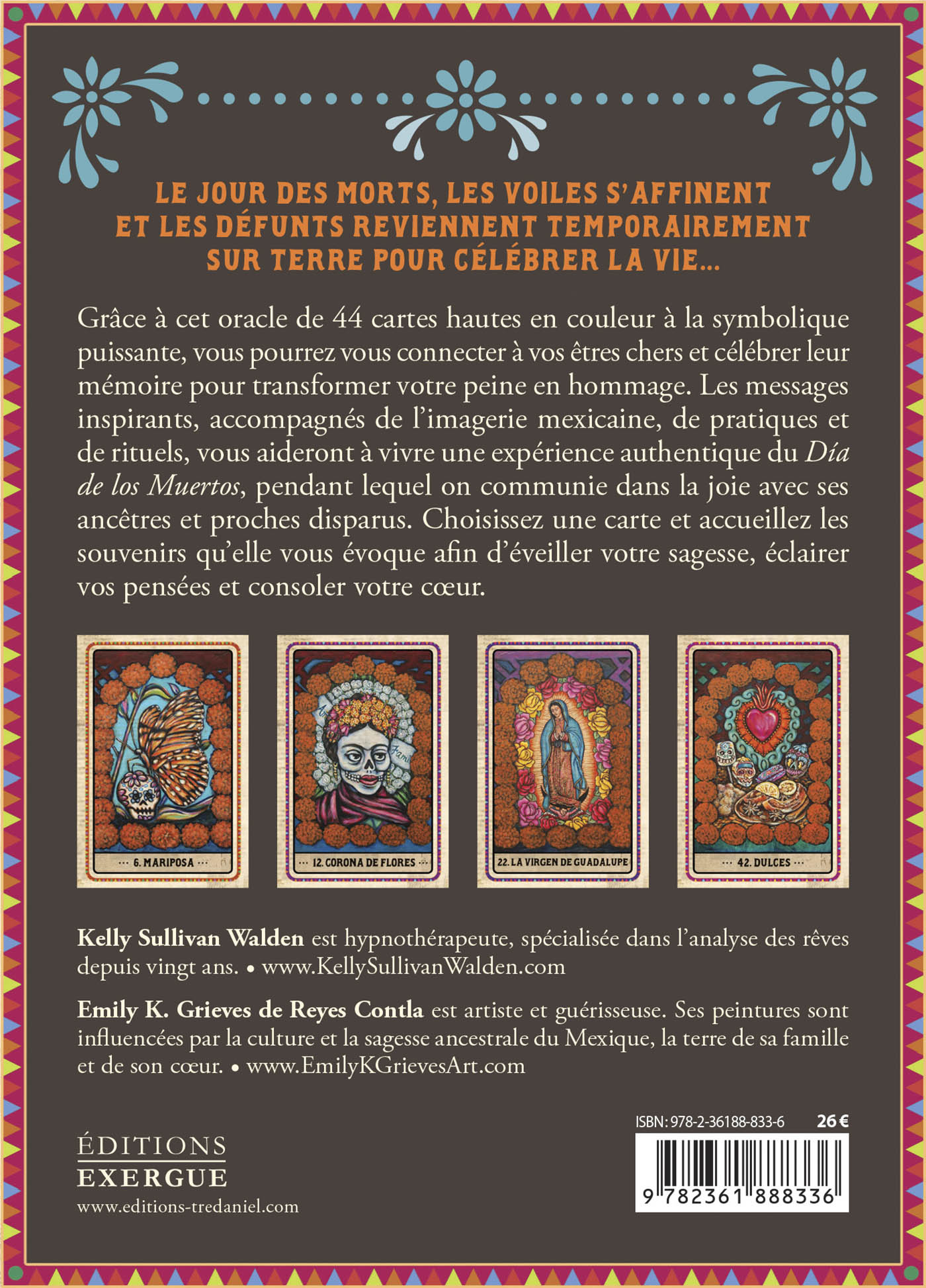 L’imagerie mexicaine de l’artiste Emily K. Grieves de Reyes Contla, accompagnée des messages inspirants de Kelly Sullivan Walden, vous aideront à vivre une expérience authentique du Día de los Muertos, où l’on communie dans la joie avec ses ancêtres et ses proches disparus. Choisissez une carte, et accueillez les souvenirs, afin d’éveiller votre sagesse, éclairer vos pensées et consoler votre cœur.