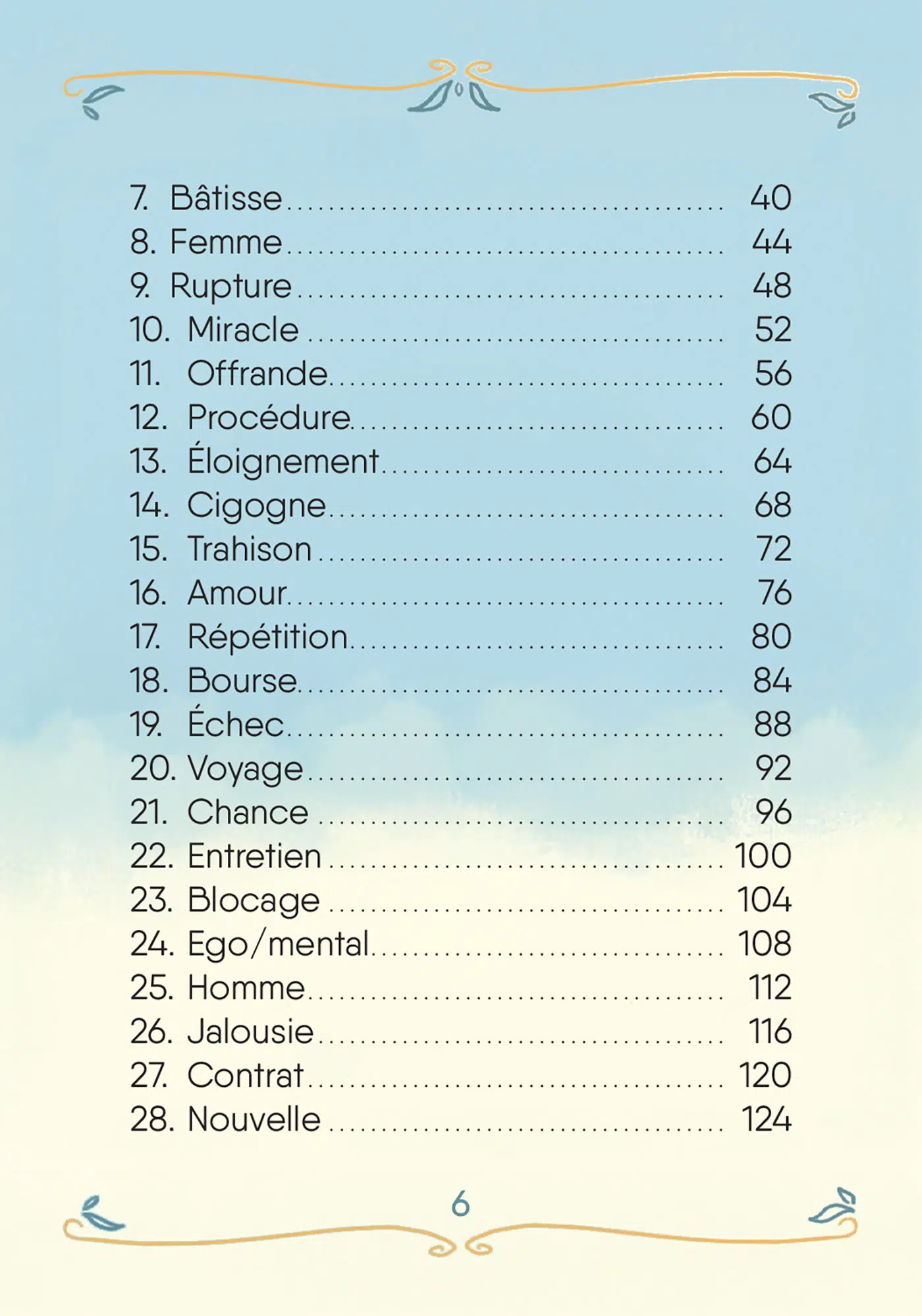 Véritable guide lumineux, cet oracle vous révélera des messages bienveillants et inspirants pour vous mener vers le chemin de la sérénité et de l’épanouissement personnel.