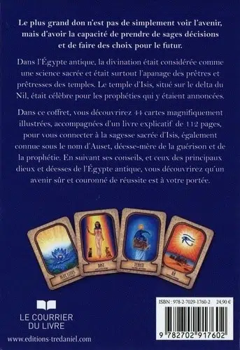Dans ce coffret, vous découvrirez 44 cartes d'enseignement magnifiquement illustrées, accompagnées d’un livre explicatif, pour vous connecter à la sagesse sacrée d’Isis, également connue sous le nom d’Auset, déesse-mère de la guérison et de la prophétie. En suivant ses conseils, et ceux des principaux dieux et déesses de l’Égypte antique, vous découvrirez qu’un avenir sûr et couronné de réussite est à votre portée.