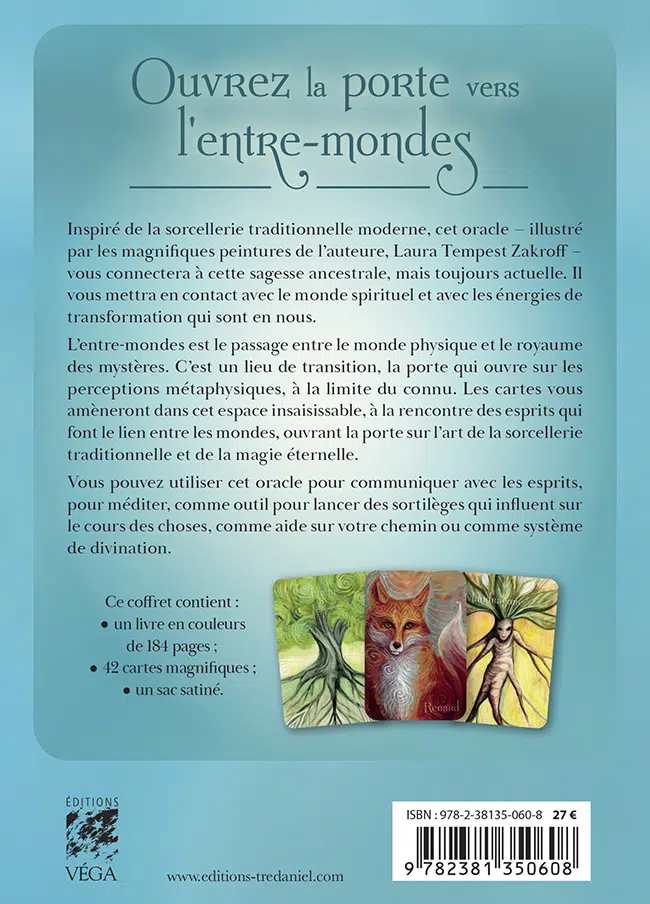 L’entre-mondes est le passage entre le monde physique et le royaume des mystères. C’est un lieu de transition, la porte qui ouvre sur les perceptions métaphysiques, à la limite du connu. Les cartes d'enseignement vous amèneront dans cet espace insaisissable, à la rencontre des esprits qui font le lien entre les mondes, ouvrant la porte sur l’art de la sorcellerie traditionnelle et de la magie éternelle.