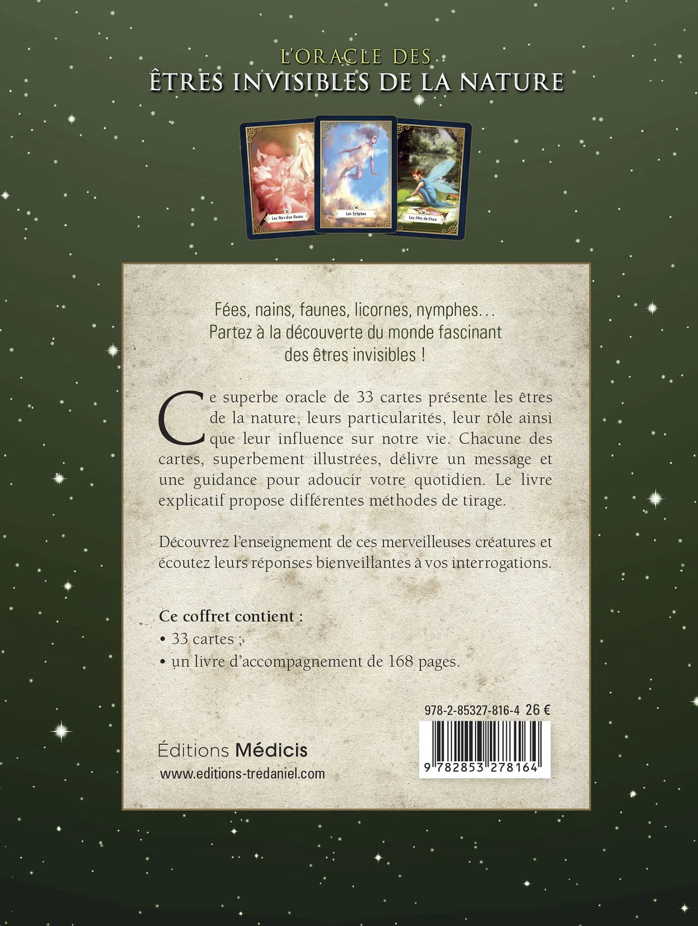 Ce superbe oracle de 33 cartes d'enseignement présente les êtres de la nature, leurs particularités, leur rôle ainsi que leur influence sur notre vie. Chacune des cartes, superbement illustrées, délivre un message et une guidance pour adoucir votre quotidien. Le livre explicatif propose différentes méthodes de tirage.