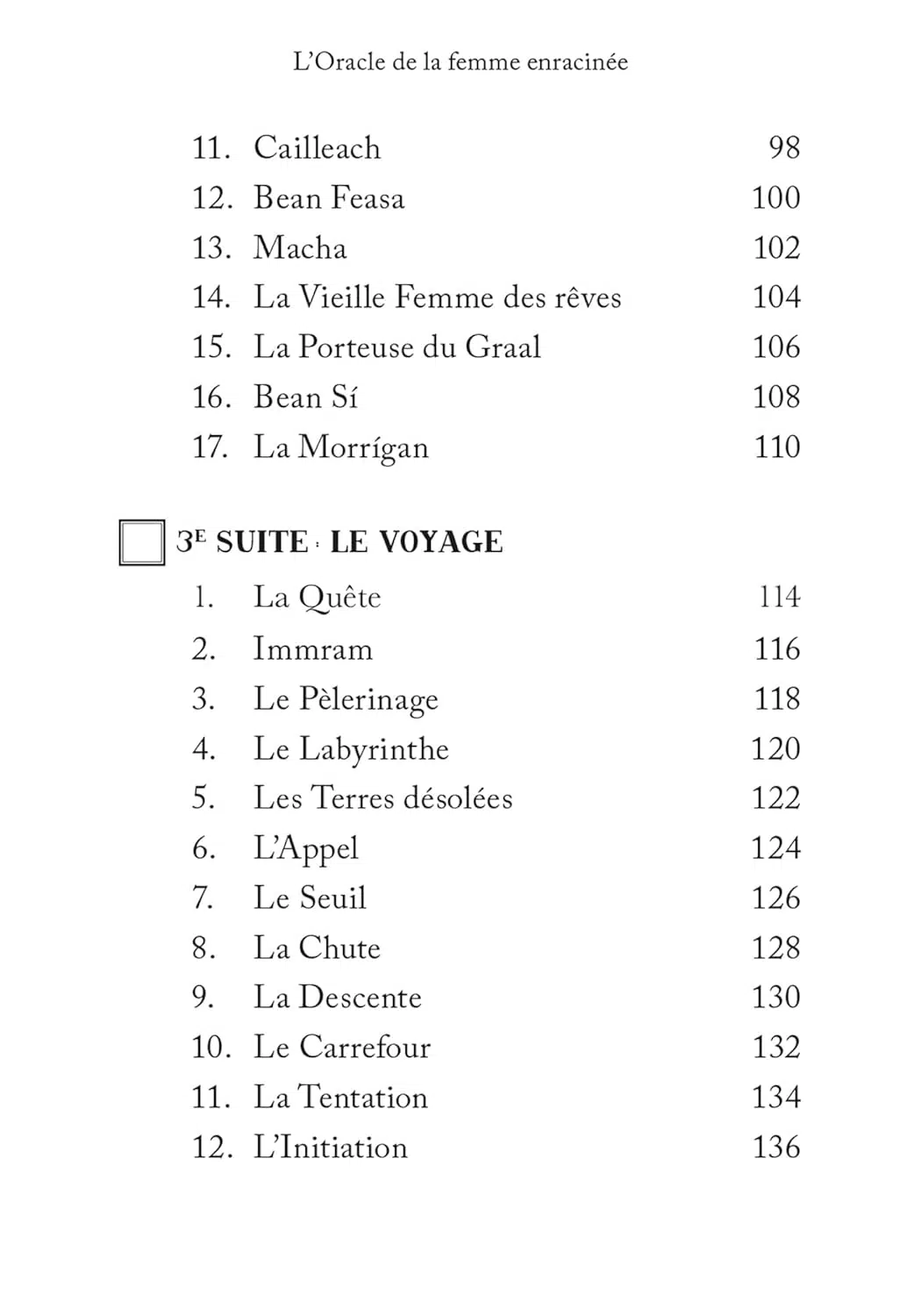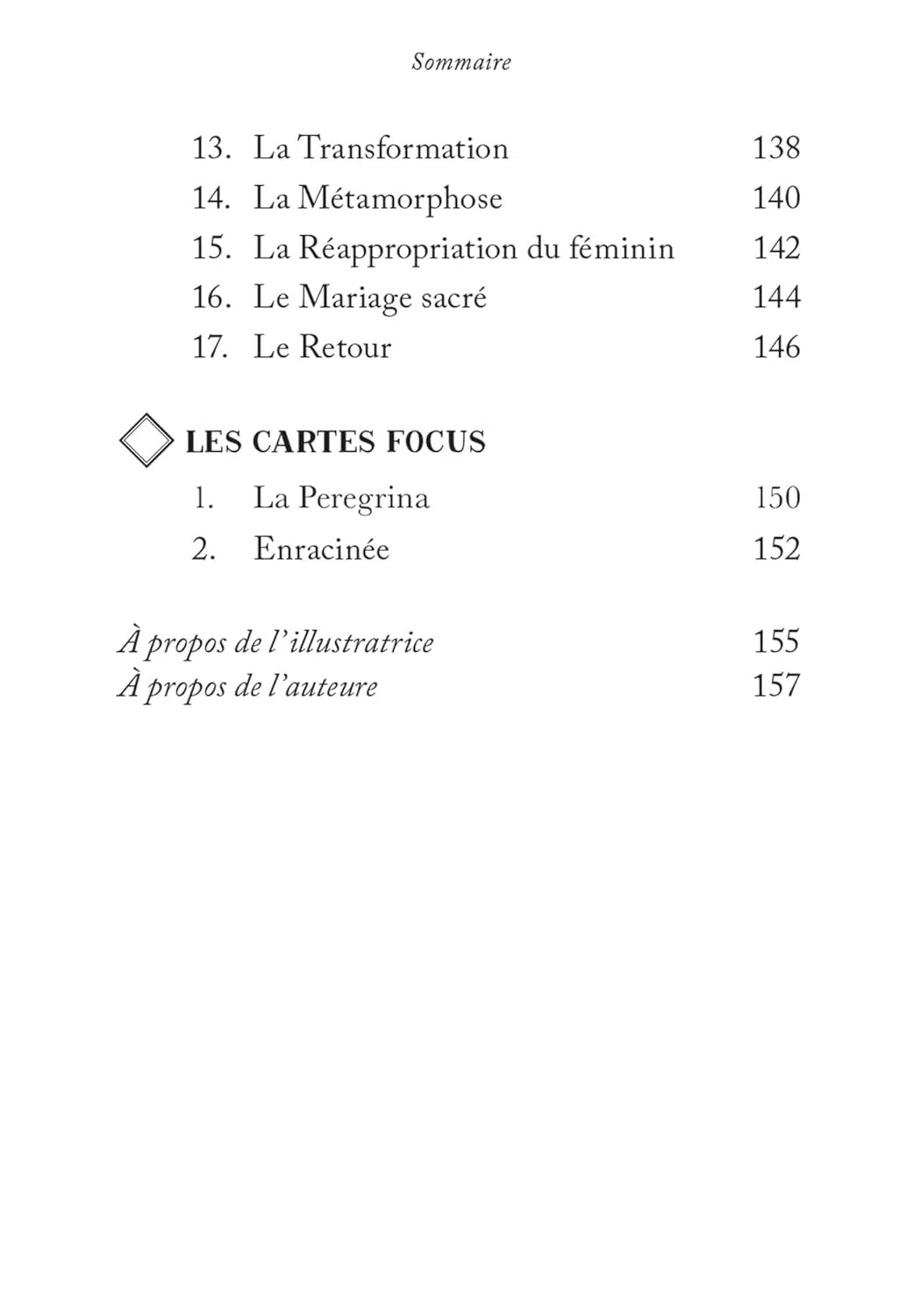 Inspiré des mythes et légendes d’Europe, ce jeu novateur révèle de nombreuses facettes du féminin. Divisé en trois suites (les lieux, les alliés et le voyage), chaque carte propose un cheminement éloquent, tout en vous guidant et en vous reliant à vos propres guides. Autant ombre que lumière, l’oracle vous permettra de comprendre et dénouer certains blocages, tout en vous orientant vers le meilleur de votre cheminement. Le but étant d’atteindre une véritable verticalité, par un ancrage puissant dans votre vie et en vous-même, déployant vos pleins pouvoirs.