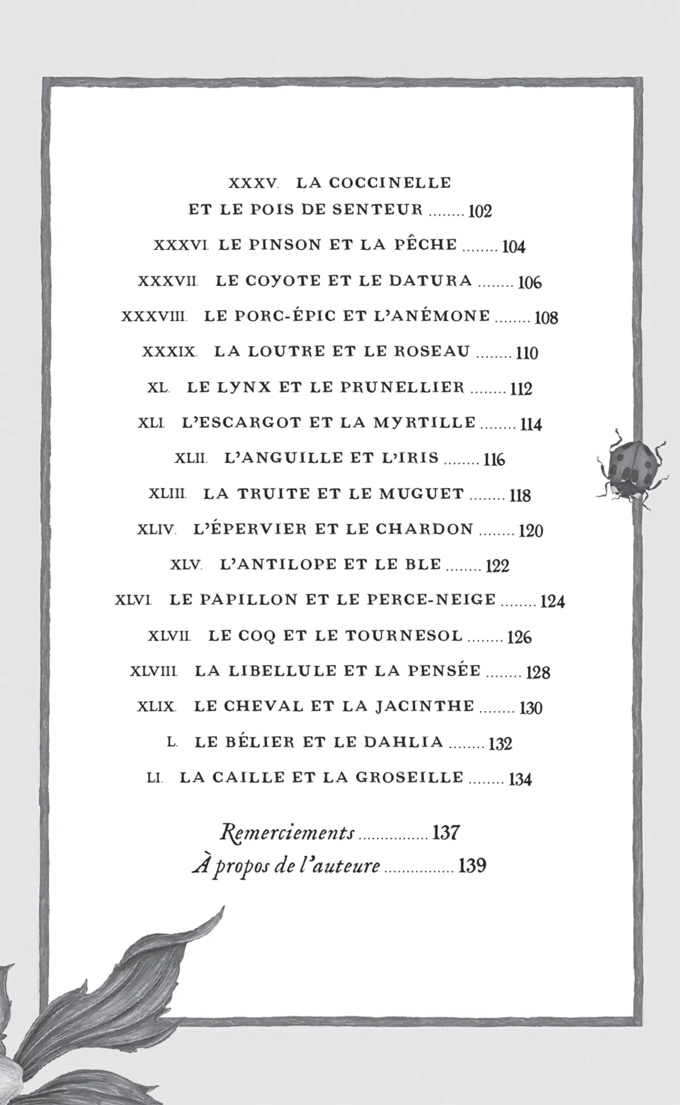 Au fil de ces pages, découvrez comment les propriétés des herbes aromatiques, fleurs et arbres de notre quotidien s'associent aux qualités les plus saillantes des animaux qui peuplent nos forêts, nos jardins, et notre culture.