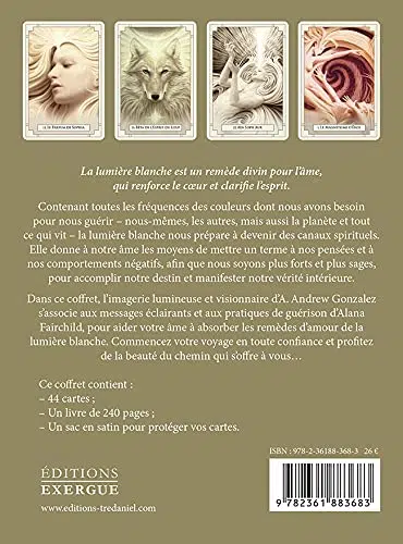 Axé sur la puissance de la lumière blanche (contenant toutes les fréquences des autres couleurs), cet oracle se veut un remède divin pour le cœur, l’esprit et l’âme. Bien au-delà d’apporter un simple message prédictif, chaque carte devient un support pour une profonde guérison intérieure. Le livre d’accompagnement, très complet, ajoute un support riche en explications et en pratique, faisant de l’ensemble un précieux compagnon.