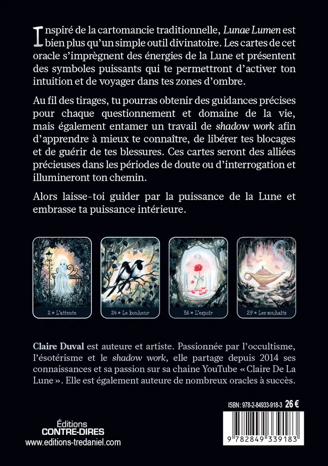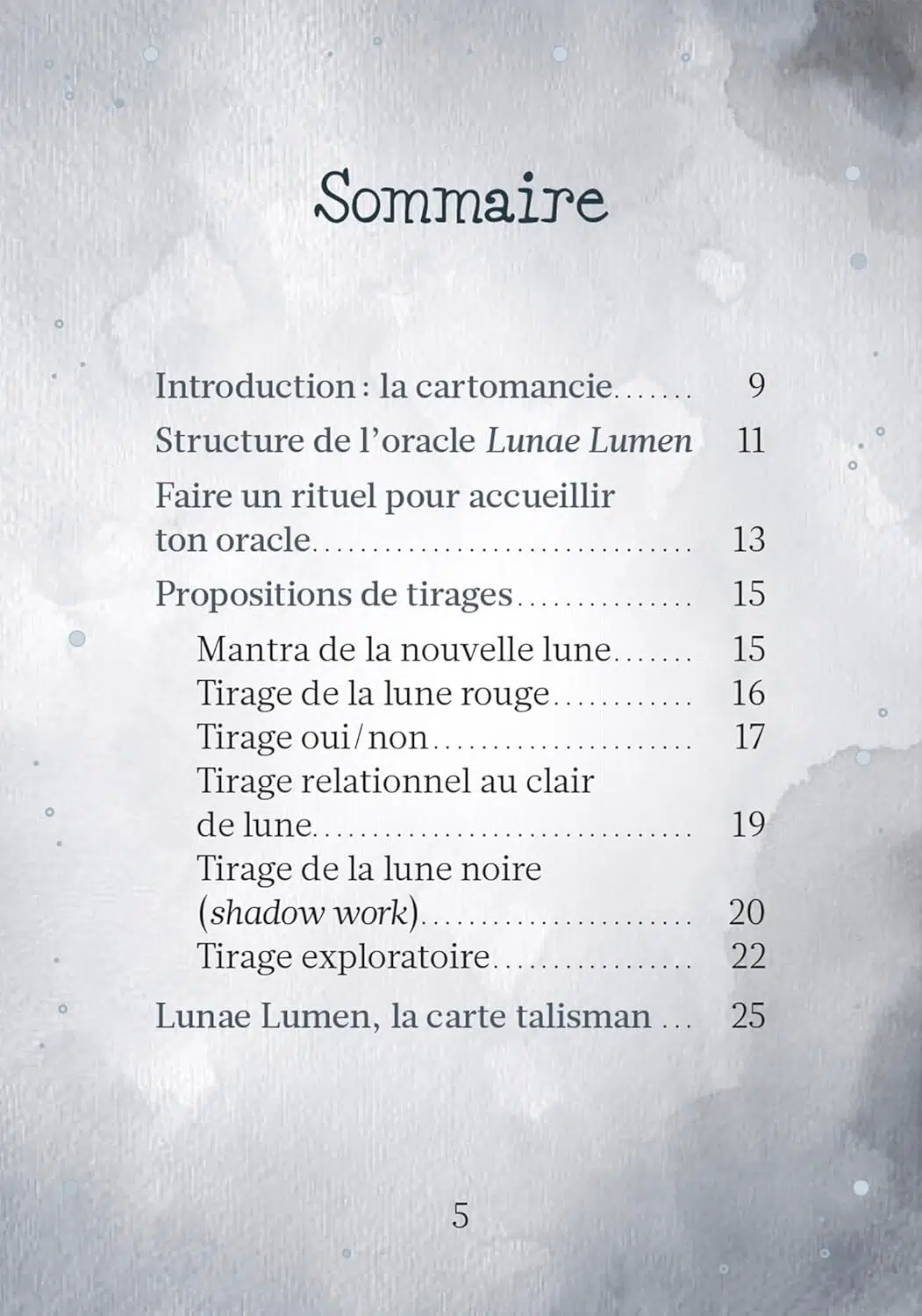 Inspiré de la cartomancie traditionnelle, Lunae Lumen est bien plus qu'un outil divinatoire traditionnel. Les cartes de cet oracle s'imprègnent des énergies et présente des symboles puissants qui te permettront d'activer ton intuition et de voyager dans tes zones d'ombres.