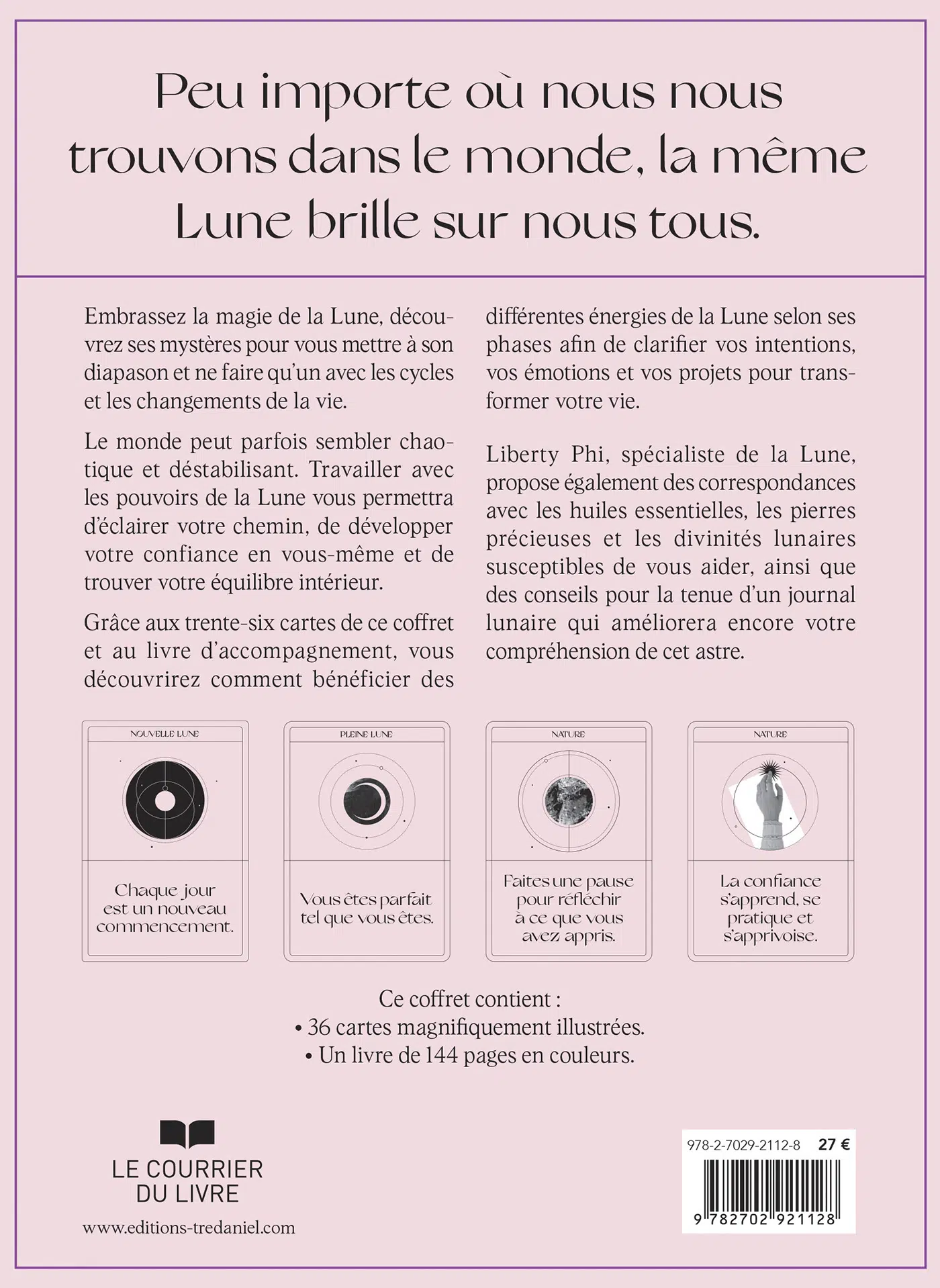 Grâce aux trente-six cartes de ce coffret et au livre d’accompagnement, vous découvrirez comment bénéficier des différentes énergies de la Lune selon ses phases afin de clarifier vos intentions, vos émotions et vos projets pour transformer votre vie.