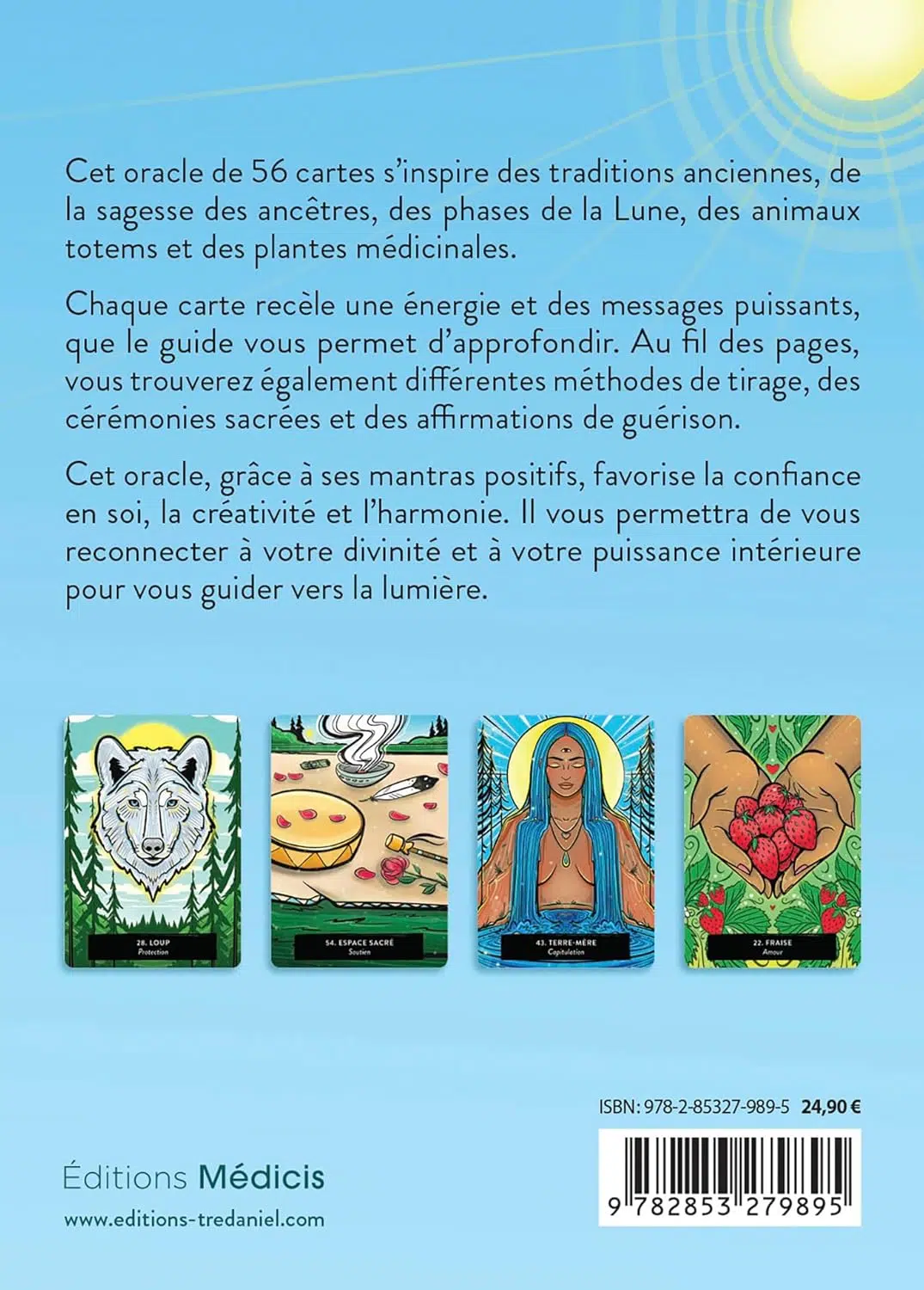 Cet oracle de 56 cartes s'inspire des traditions anciennes, de la sagesse des ancêtres, des phases de la Lune, des animaux totems et des plantes médicinales.
