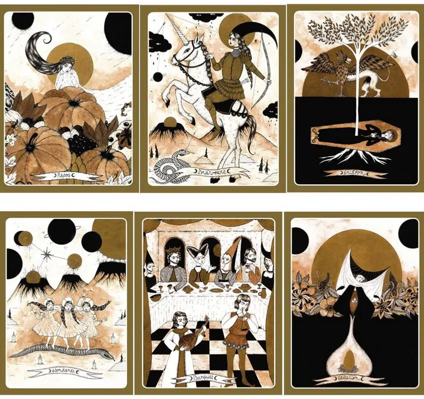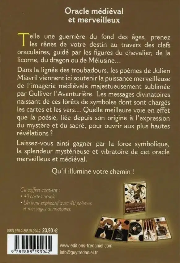 Les messages divinatoires naissant de ces forêts de symboles dont sont chargés les cartes et les vers... Quelle meilleure voie en effet que la poésie, liée depuis son origine à l'expression du mystère et du sacré, pour ouvrir aux plus hautes révélations ?