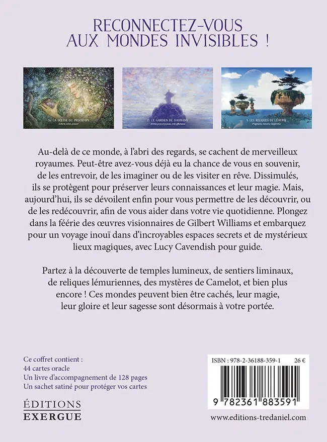 Au-delà de ce monde, à l’abri des regards, se cachent de merveilleux royaumes. Peut-être avez-vous déjà eu la chance de vous en souvenir, de les entrevoir, de les imaginer ou de les visiter en rêve. Dissimulés, ils se protègent pour préserver leurs connaissances et leur magie. Mais, aujourd’hui, ils se dévoilent pour vous permettre de les découvrir, ou de les redécouvrir, afin de vous aider dans votre vie quotidienne.
