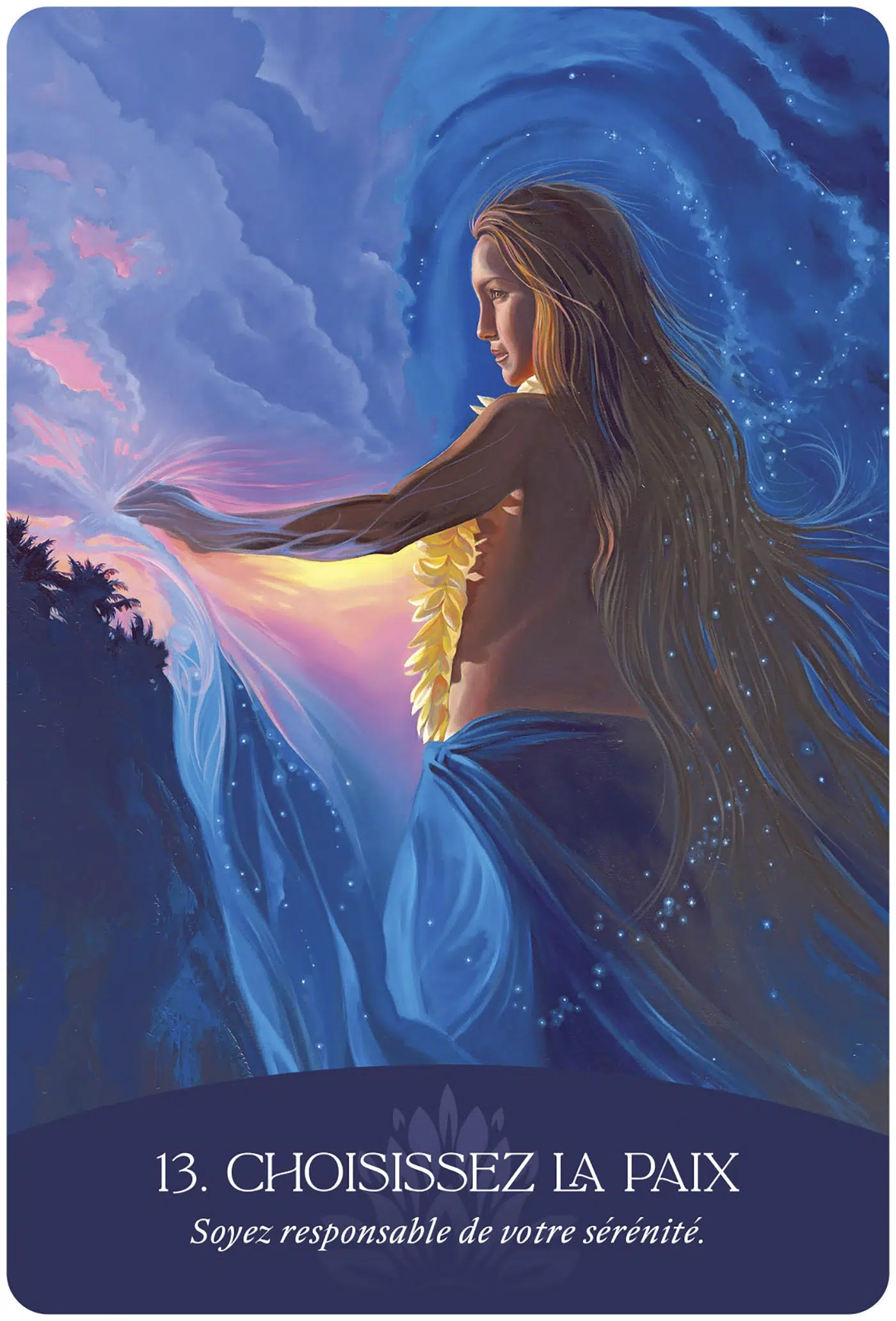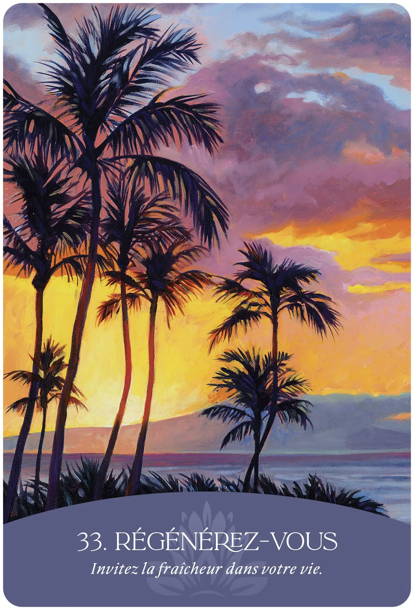 Angela Hartfield vous invite à un magnifique voyage au cœur des îles paradisiaques. Laissez l’énergie vibratoire de chaque carte vous imprégner et ressentez au plus profond de vous-même la sérénité et l’harmonie intérieure. Grâce au trait délicat de Christina DeHoff, fondé sur la sagesse maorie, vibrez au diapason avec la nature, les éléments sacrés et ouvrez votre cœur à une fréquence de guérison.