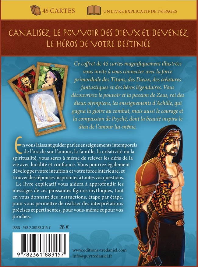 Ce coffret de 45 cartes d'enseignement magnifiquement illustrées vous invite à vous connecter avec la force primordiale des Titans, des Dieux, des créatures fantastiques et des héros légendaires. Vous découvrirez le pouvoir et la passion de Zeus, roi des dieux olympiens, les enseignements d’Achille, qui gagna la gloire au combat, mais aussi le courage et la compassion de Psyché, dont la beauté inspira le dieu de l’amour lui-même.