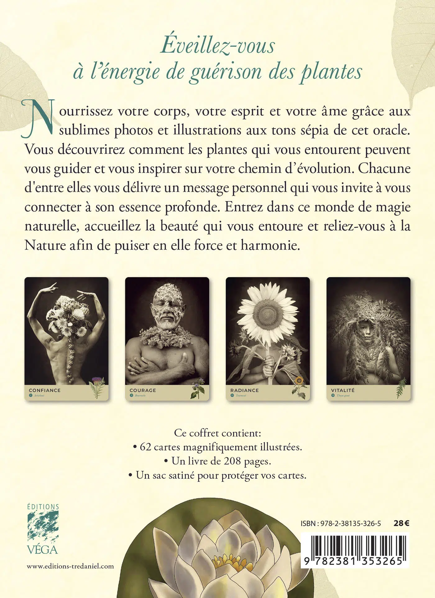 Nourrissez votre corps, votre esprit et votre âme grâce à cet oracle qui présente de sublimes photos et illustrations aux tons sépia. Vous allez découvrir comment les plantes qui vous entourent peuvent vous guider et vous inspirer sur votre chemin d’évolution. Chacune a un message personnel à vous délivrer et vous invite à vous connecter à son essence profonde. Entrez dans ce monde de magie naturelle, accueillez la beauté qui vous entoure et reliez-vous à la Nature pour puiser en elle force et harmonie.