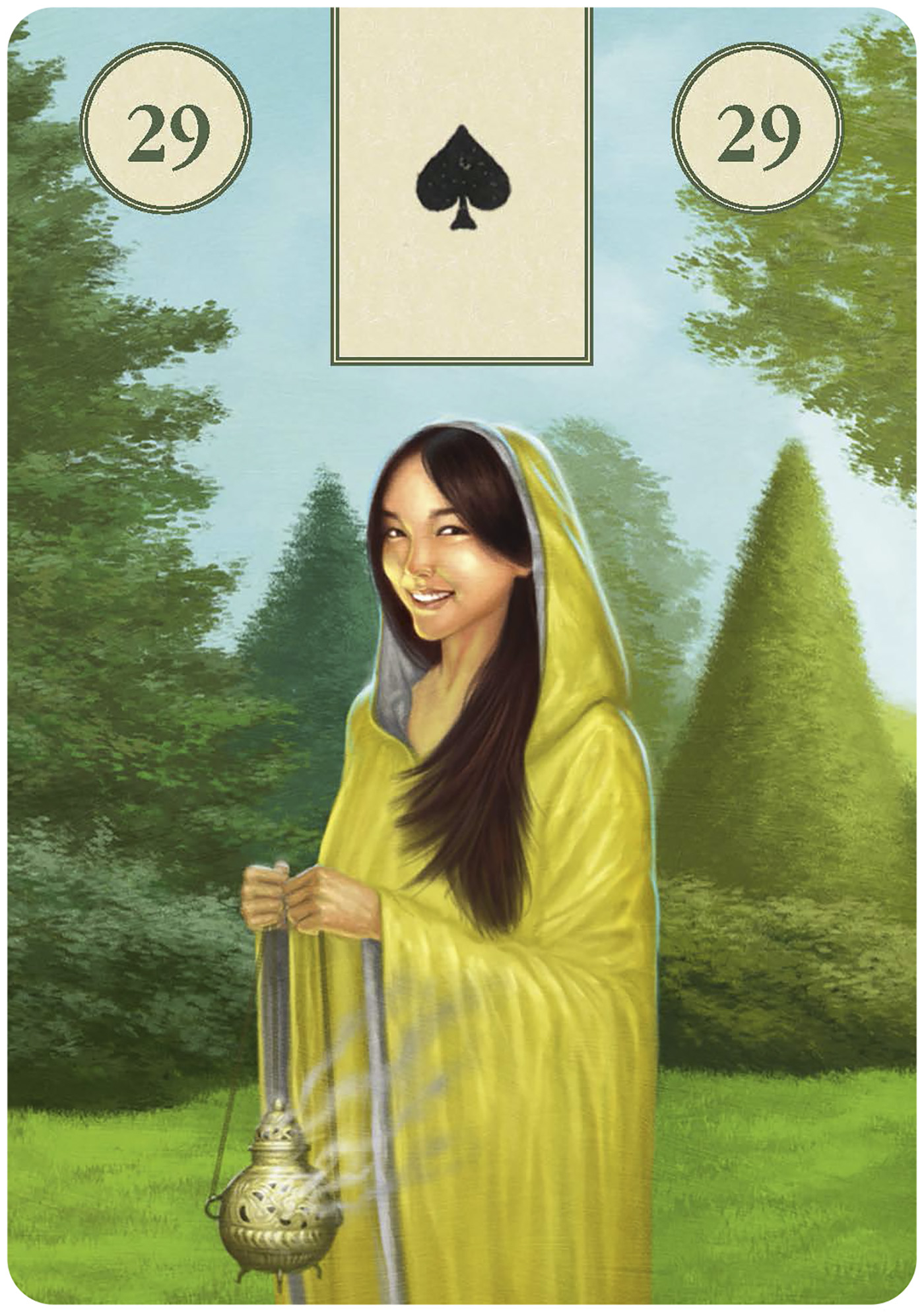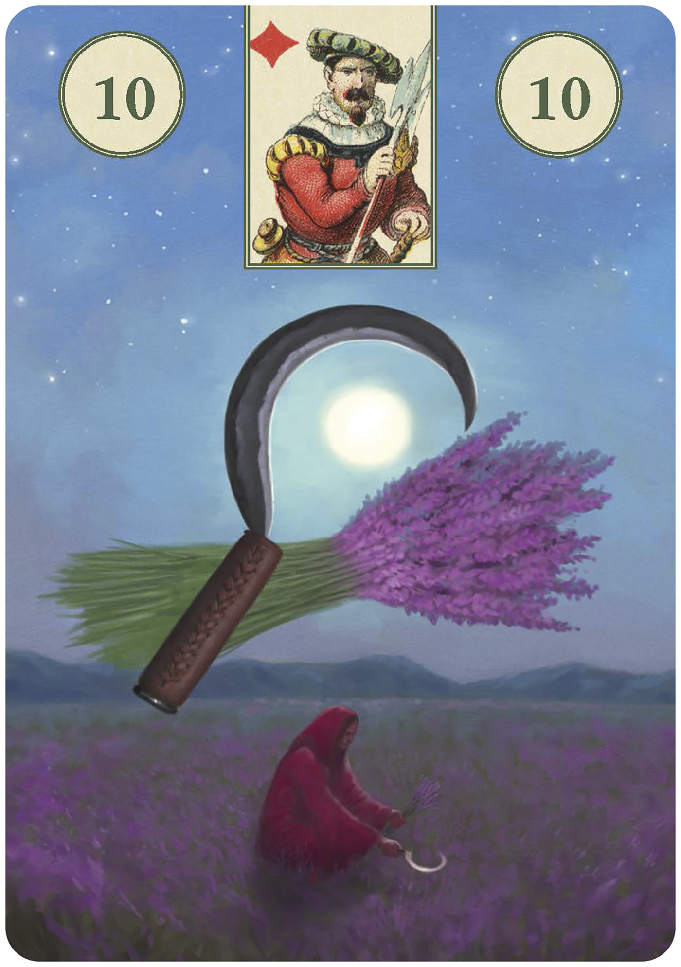 Cet oracle reprend le traditionnel "Petit Lenormand", mais avec des illustrations d'inspirations plus païennes et wiccanes.