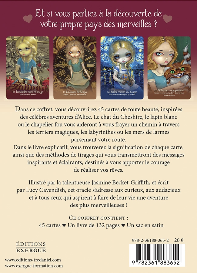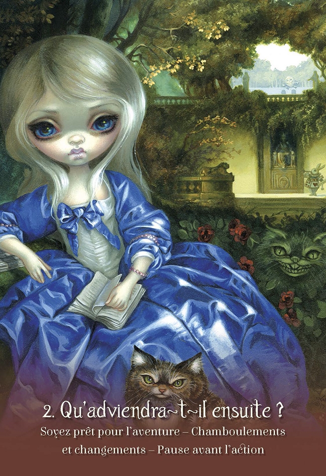 Dans ce coffret, vous découvrirez 45 cartes d'enseignement de toute beauté, inspirées des célèbres aventures d’Alice. Le chat du Cheshire, le lapin blanc ou le chapelier fou vous aideront à vous frayer un chemin à travers les terriers magiques, les labyrinthes ou les mers de larmes parsemant votre route.
