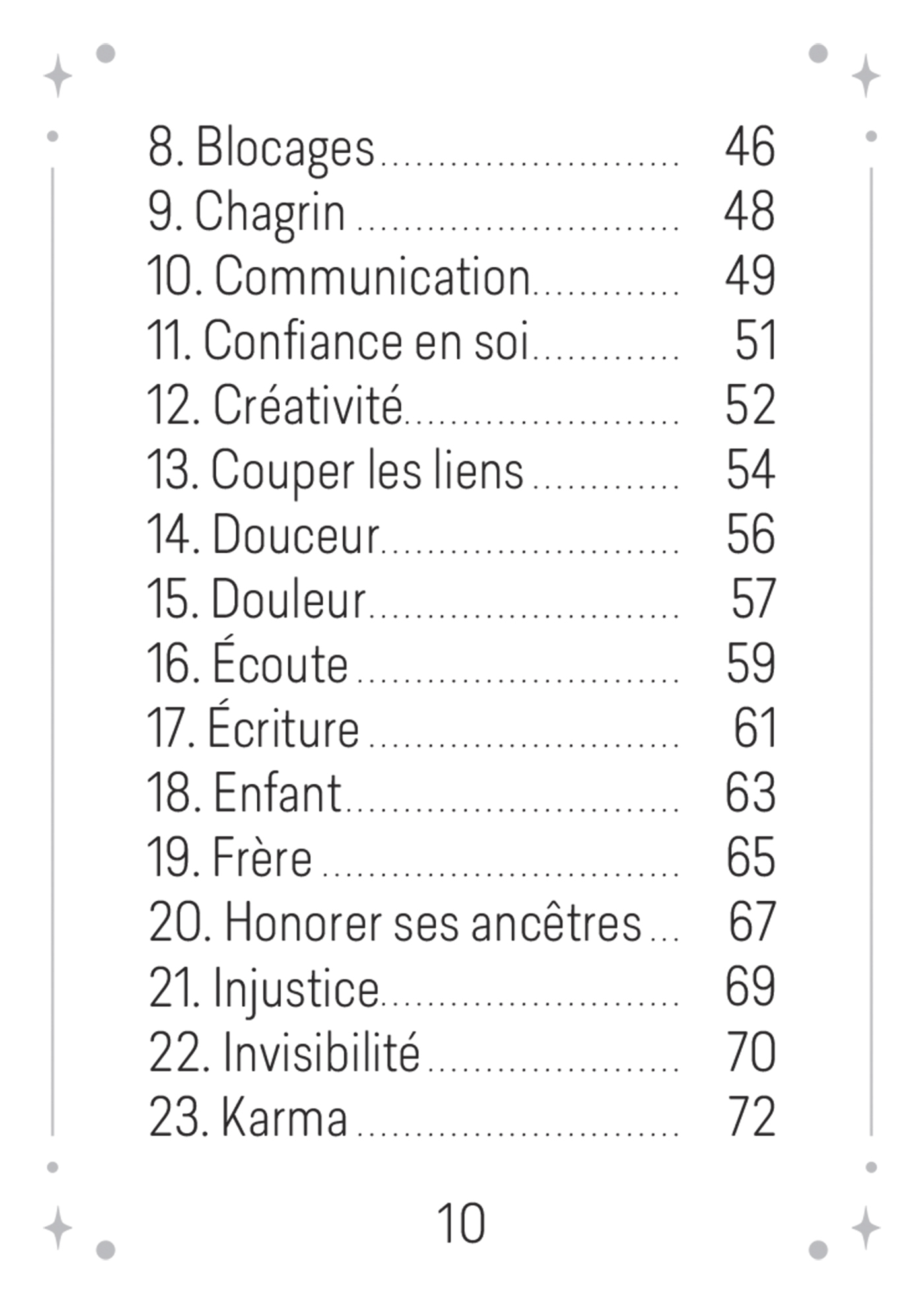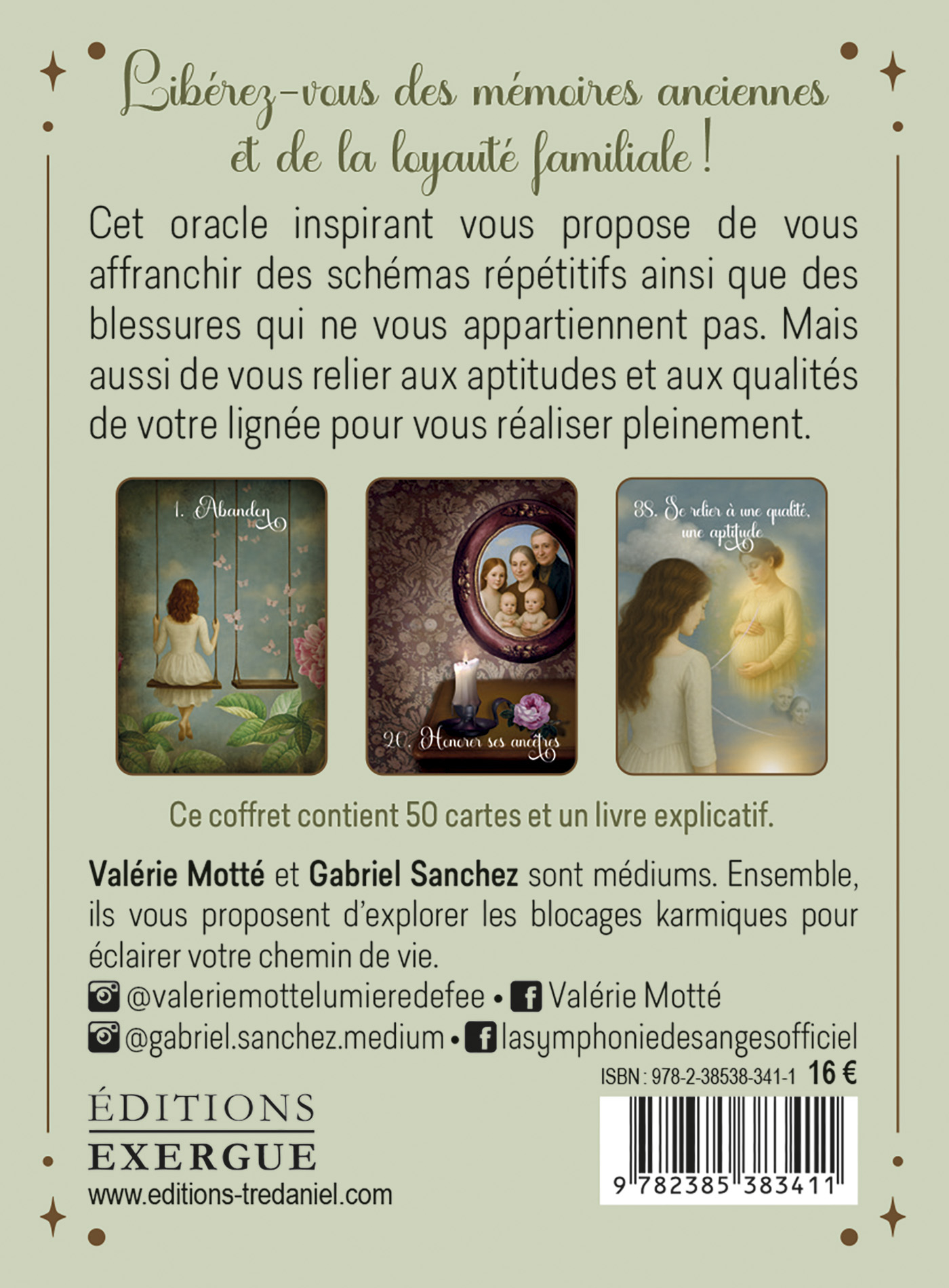 Cet oracle inspirant vous propose de vous affranchir des schémas répétitifs ainsi que des blessures qui ne vous appartiennent pas. Mais aussi de vous relier aux aptitudes et aux qualités de votre lignée pour vous réaliser pleinement.