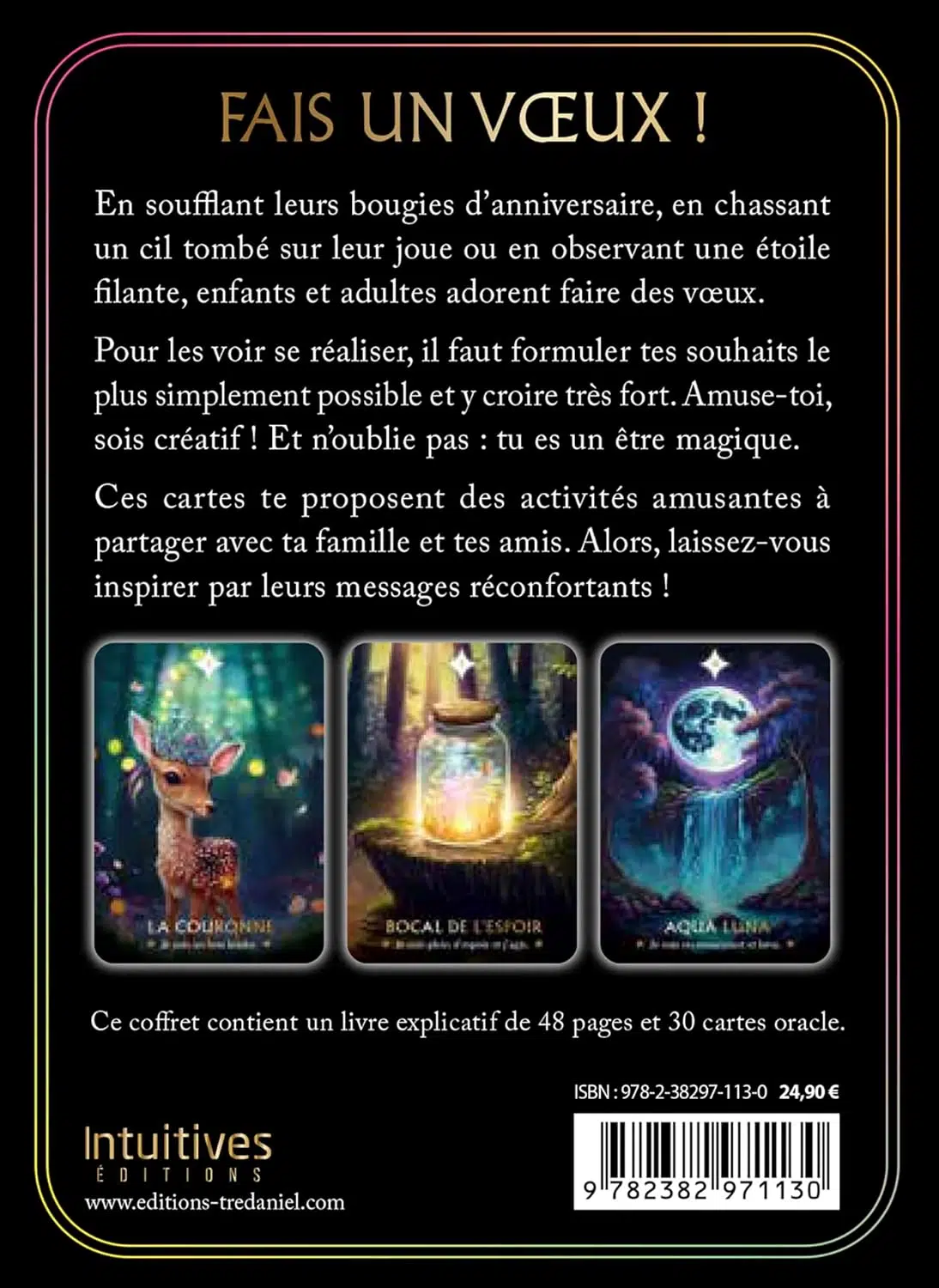 Un oracle unique, rappelant la magie des vœux que l’on formule, soulignant que nous sommes tous magiques. Utilisable comme un jeu proposant des activités amusantes en famille ou entre amis, dans une énergie positive et bienveillante. Une légèreté féérique qui apporte un soupçon de rêve dans le quotidien, idéal à partager.