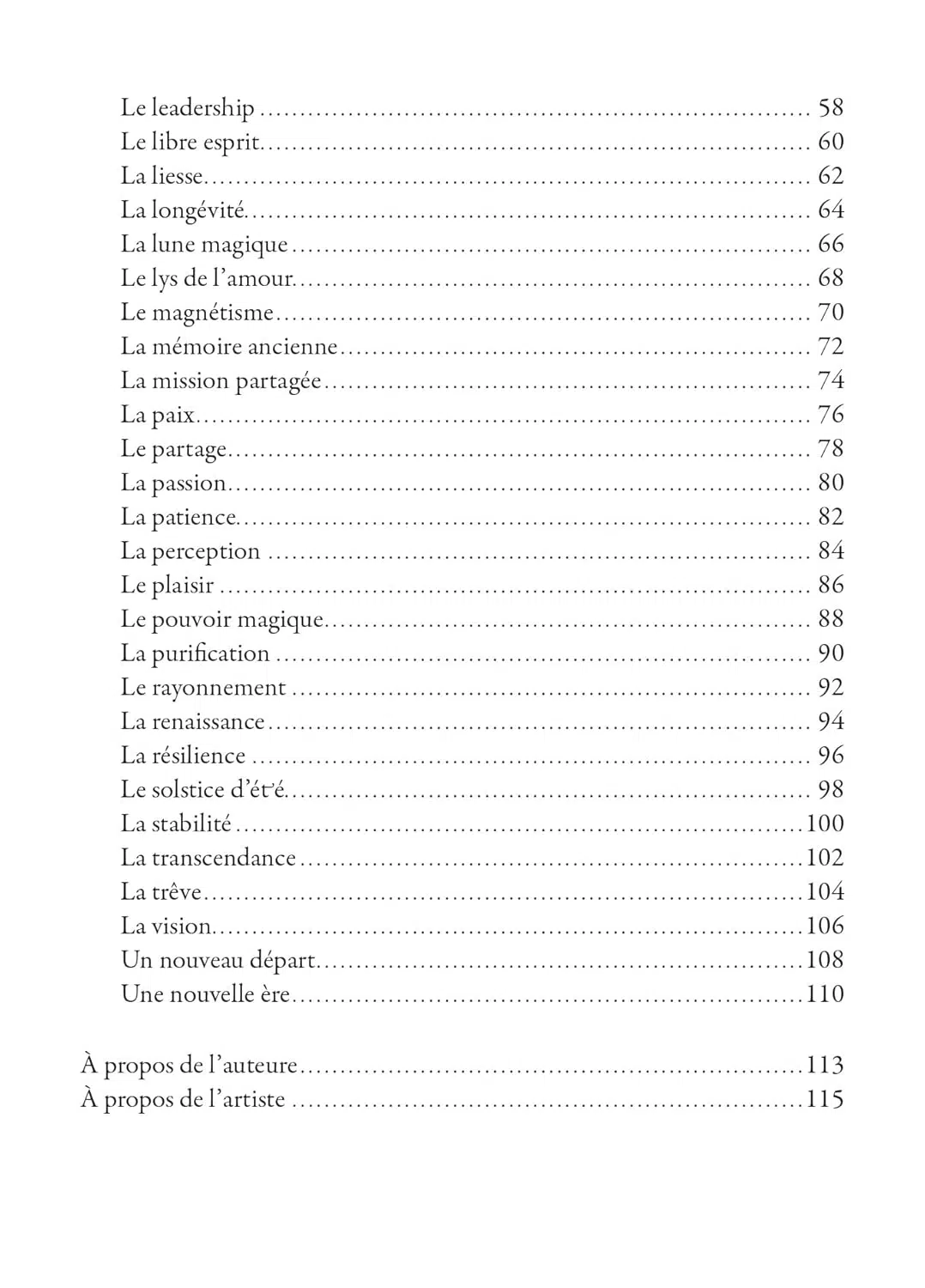 Étincelantes et enchanteresses, les fées s'apprêtent à embrasser votre univers, à vous libérer des contraintes limitantes et à imprégner votre cœur de clarté, de connaissances et d'intentions positives. Sincères, visionnaires et ingénieuses, elles sont des compagnes à la fois sages et intrépides.
