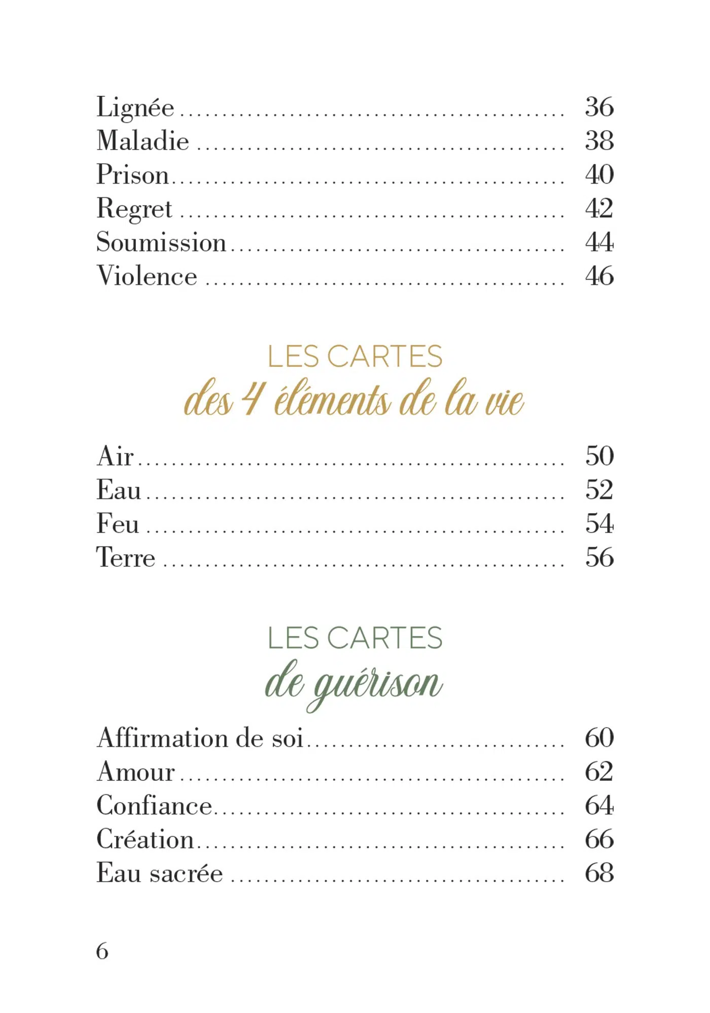 Dans le livre explicatif, tu découvriras la signification des cartes ainsi que les méthodes de tirage, afin de faire le point sur ta vie actuelle. Ainsi, tu pourras emprunter le chemin qui correspond vraiment à ton épanouissement personnel. Laisse vibrer les images en toi, suis ton intuition et fais confiance à tes guides pour t’apporter le soutien et la guérison dont tu as besoin.