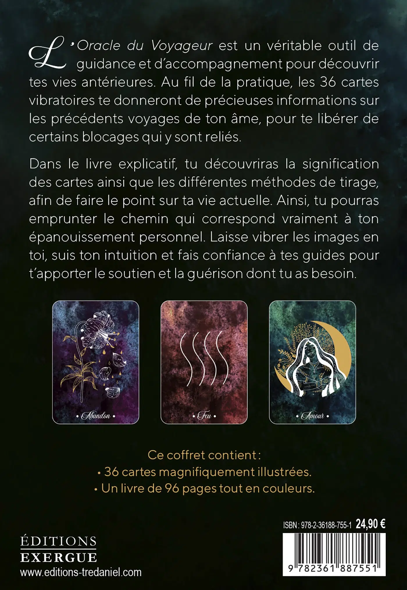 L'Oracle du Voyageur est un véritable outil de guidance et d'accompagnement pour découvrir tes vies antérieures. Au fil de la pratique, les 36 cartes vibratoires te donneront de précieuses informations sur les précédents voyages de ton âme, pour te libérer de certains blocages qui y sont reliés.