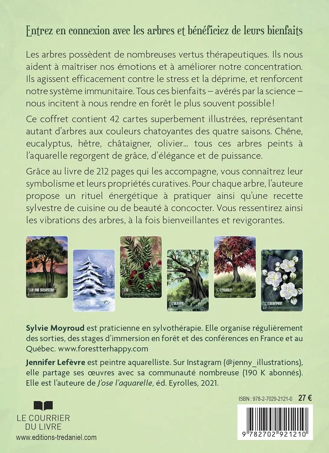 Ce coffret contient 42 cartes superbement illustrées, représentant autant d'arbres aux couleurs chatoyantes des quatre saisons. Chêne, eucalyptus, hêtre, châtaigner, olivier... tous ces arbres peints à l'aquarelle regorgent de grâce, d'élégance et de puissance.