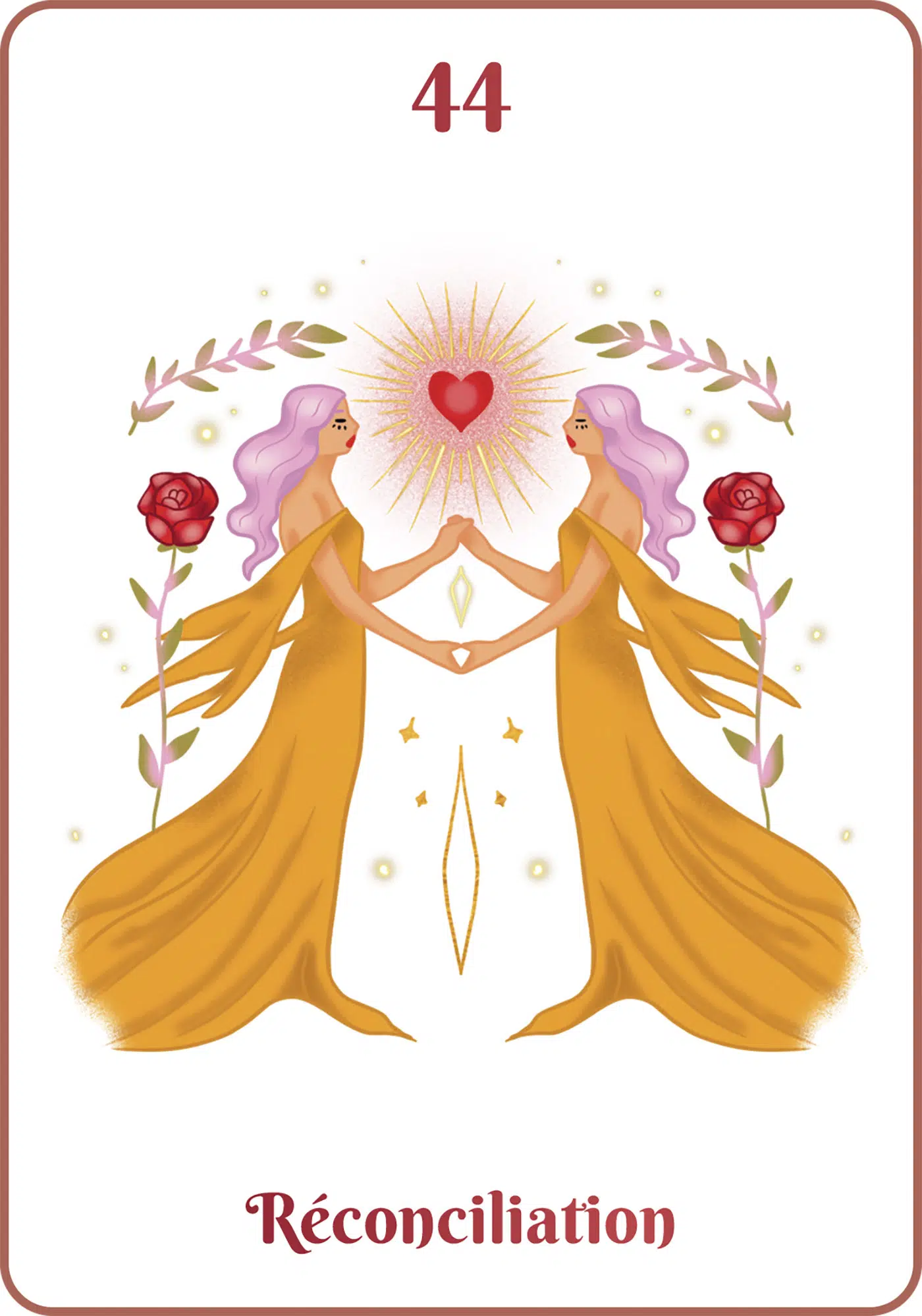 Cet oracle, composé de 44 cartes magnifiquement illustrées, vous guidera avec douceur et bienveillance sur le chemin de l’amour. Tel un confident, il vous aidera à mieux comprendre vos émotions, vos désirs et vos besoins profonds.