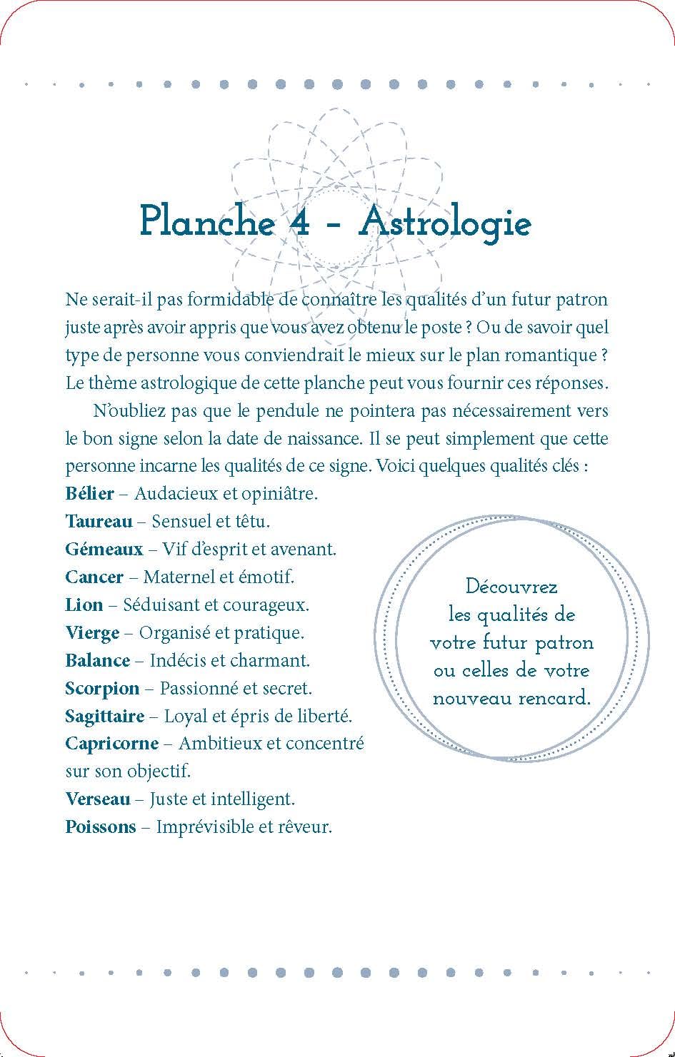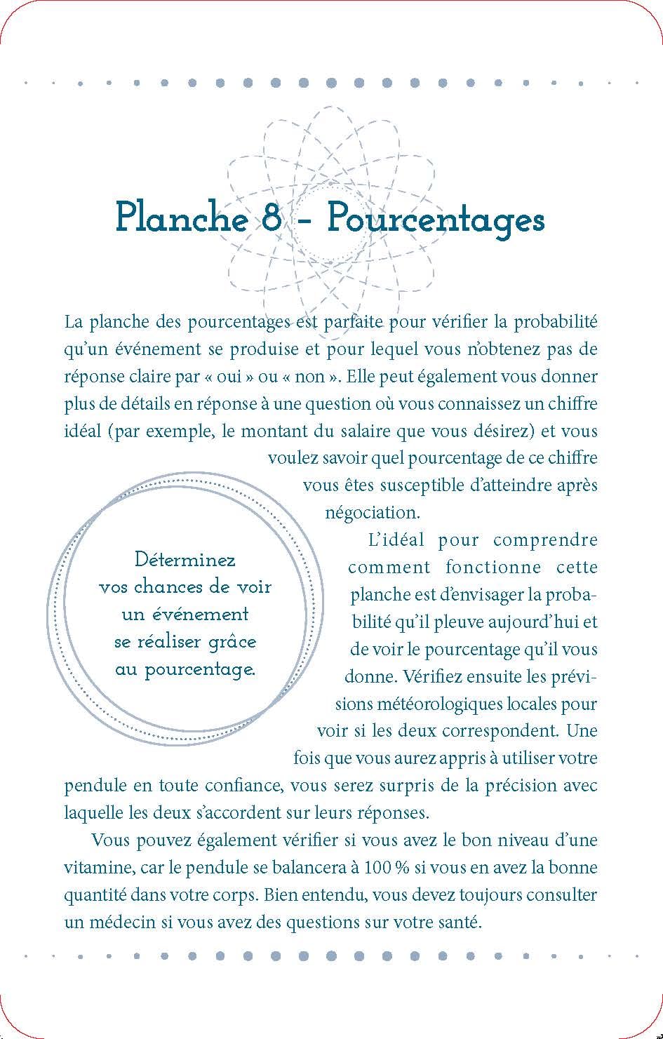 Dans ce guide, vous apprendrez à nettoyer votre pendule et à l'utiliser correctement pour répondre à toutes les questions que vous vous posez. En travaillant avec les huit planches de divination, vous pouvez affiner les informations dont vous avez besoin et profiter d'un aperçu incroyablement précis du spirituel et du quotidien.