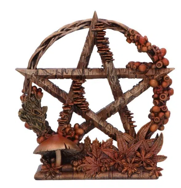 Utilisé depuis l'antiquité mésopotamienne puis repris par les pythagoricien de la Grèce antique, le Pentagramme (étoile à cinq branches tracée d'un seul trait) symbolisme l'équilibre des éléments, chacune de ses branches incarnant l'eau, le feu, la terre, l'air et l'esprit. Dans sa version Pentacle (le même symbole inscrit dans un cercle), il représente l'unité et l'infini, la protection par les éléments et l'énergie magique "scellée", ainsi que la maîtrise du praticien sur ces éléments. Souvent craint (à tort), c'est aujourd'hui une représentation très répandue du microcosme et du macrocosme, ainsi que du lien entre l'humain, la nature et le divin.