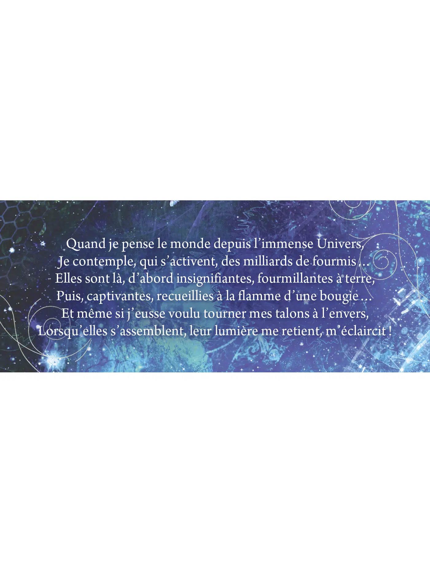 Une légende raconte que, dans l’Univers, un Penseur cosmique fut fasciné par notre Terre et par l'Humanité. Inspiré par notre quête spirituelle et les Chemins menant à l'Éveil, il prit des notes et les dispersa dans le cœur des étoiles. Il paraît que c'est en contemplant leur lumière que nous découvrirons leurs enseignements et que notre voie s'éclairera.