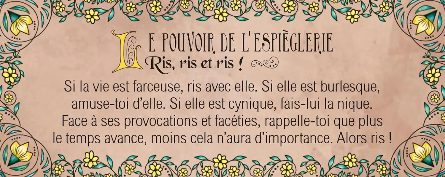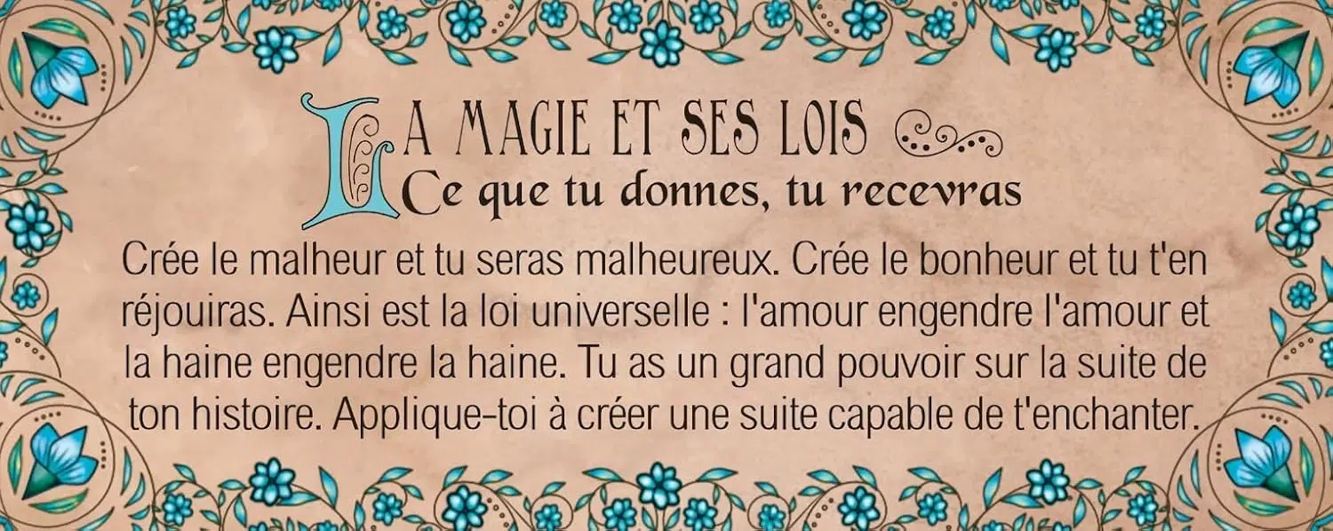 Familière avec ces petits formats de carte, l’auteure a ici conçu un jeu rempli de perles de sagesses, qui raisonnent facilement en nous. Des phrases tirées des épopées de la vie de Merlin, comme de ce que son personnage peut inspirer philosophiquement et spirituellement… Bien au-delà du simple fantastique. Le tout associé aux belles illustrations lumineuses et colorées, auxquelles l’auteure nous a habitué.