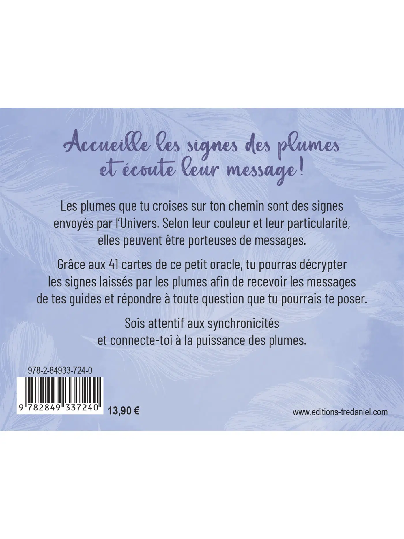 Grâce aux 43 cartes de ce petit oracle, tu pourras décrypter les signes laissés par les plumes afin de recevoir les messages de tes guides et répondre à toute question que tu pourrais te poser.