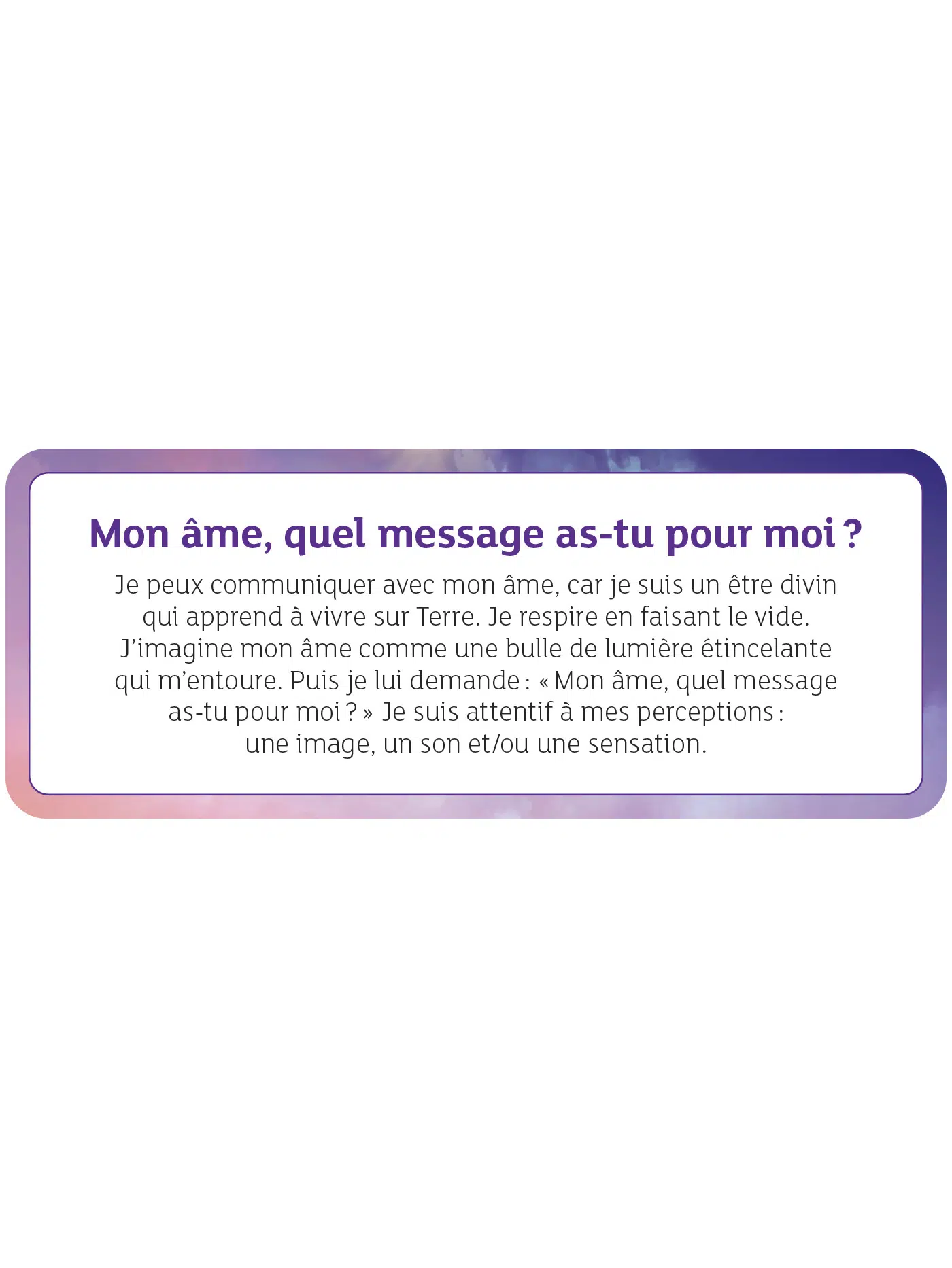 Grâce à ces 81 cartes, vous prendrez plaisir à ouvrir votre canal médiumnique et à recevoir des signes de votre âme, de vos guides, de vos anges et de l’Univers. Chacune d’entre elles vous invite à jouer et à pratiquer.