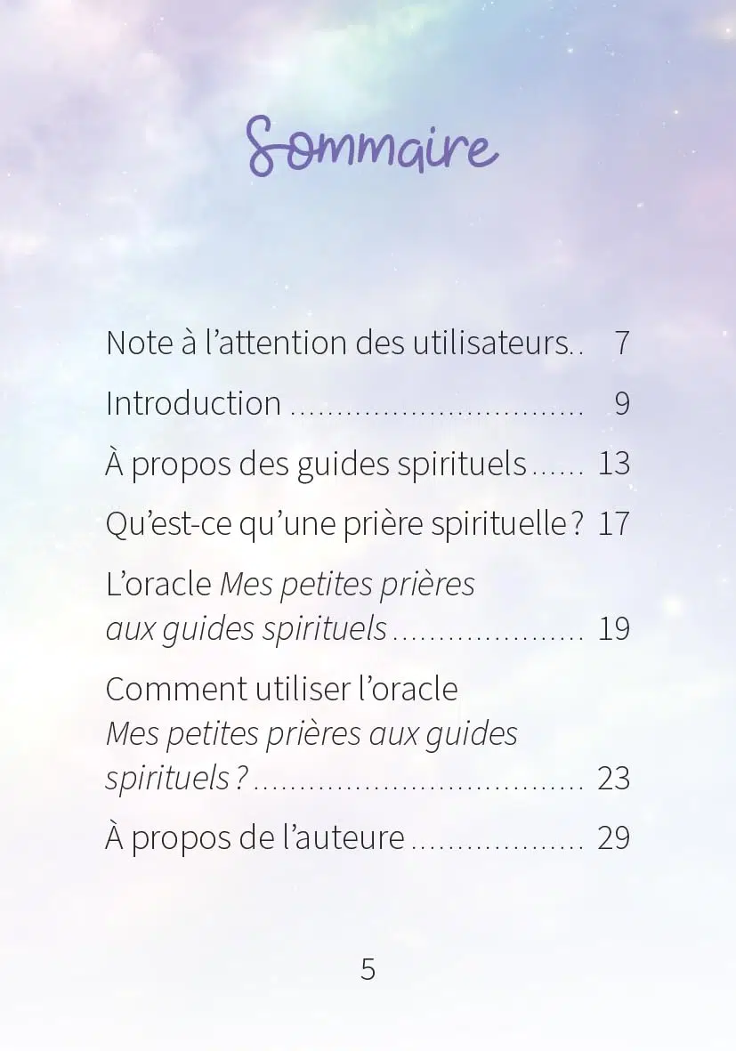 Grâce à ces 44 cartes contenant des prières spirituelles lumineuses et puissantes, vous pourrez communiquer avec vos guides et créer un lien fort avec eux afin qu'ils vous accompagnent, vous soutiennent et vous exaucent dans tous les domaines de votre vie.