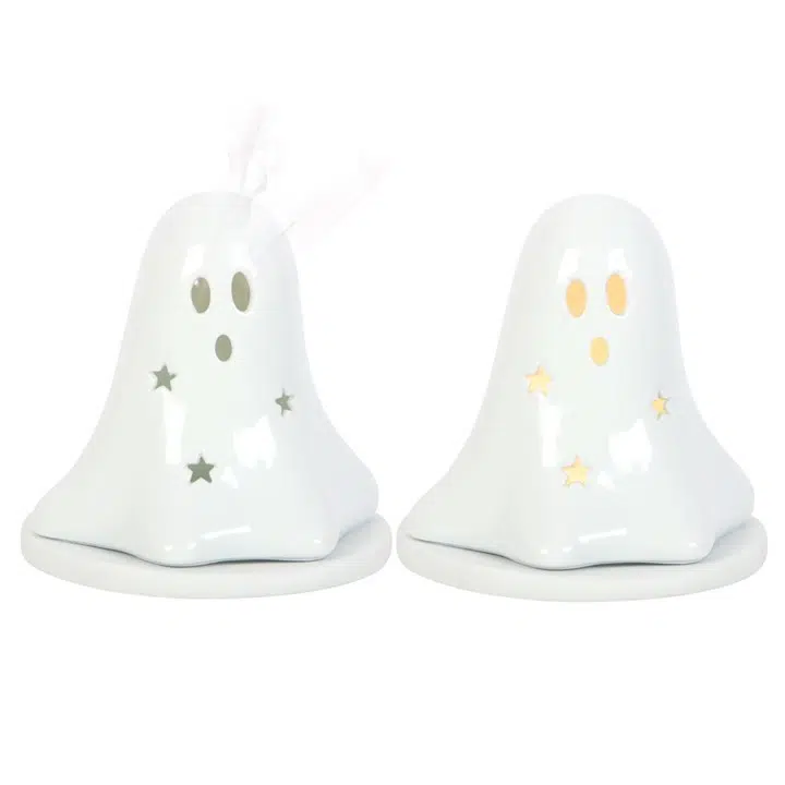 Ce fantôme en céramique blanche peut accueillir soit une bougie chauffe-plat, soit un cône d'encens.