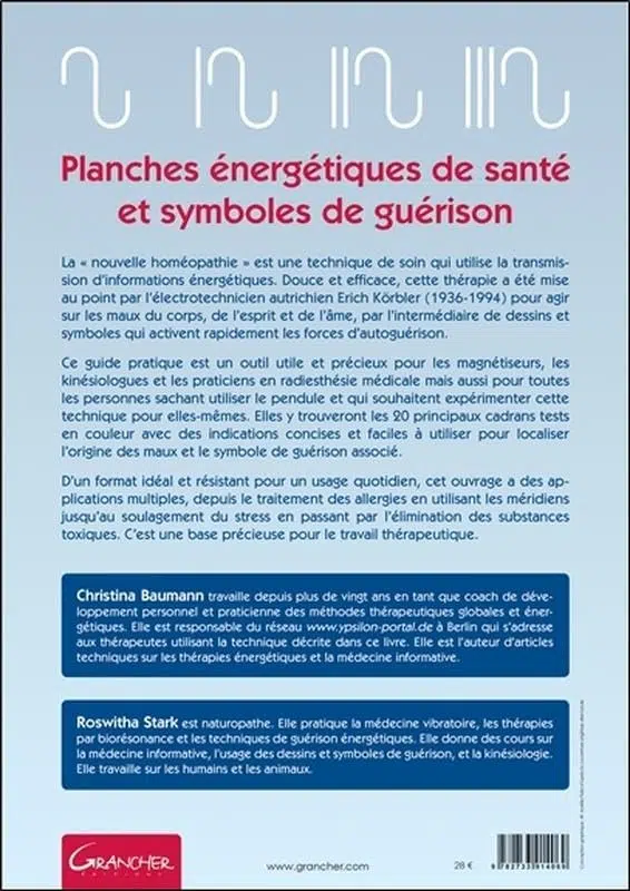 Ce guide pratique est un outil utile et précieux pour les magnétiseurs, les kinésiologues et les praticiens en radiesthésie médicale mais aussi pour toutes les personnes sachant utiliser le pendule et qui souhaitent expérimenter cette technique pour elles-mêmes. Elles y trouveront les 20 principaux cadrans tests en couleur avec des indications concises et faciles à utiliser pour localiser l'origine des maux et le symbole de guérison associé.