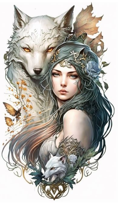 Plaque métal : Femme avec papillons & loups blanc - 27x48cm