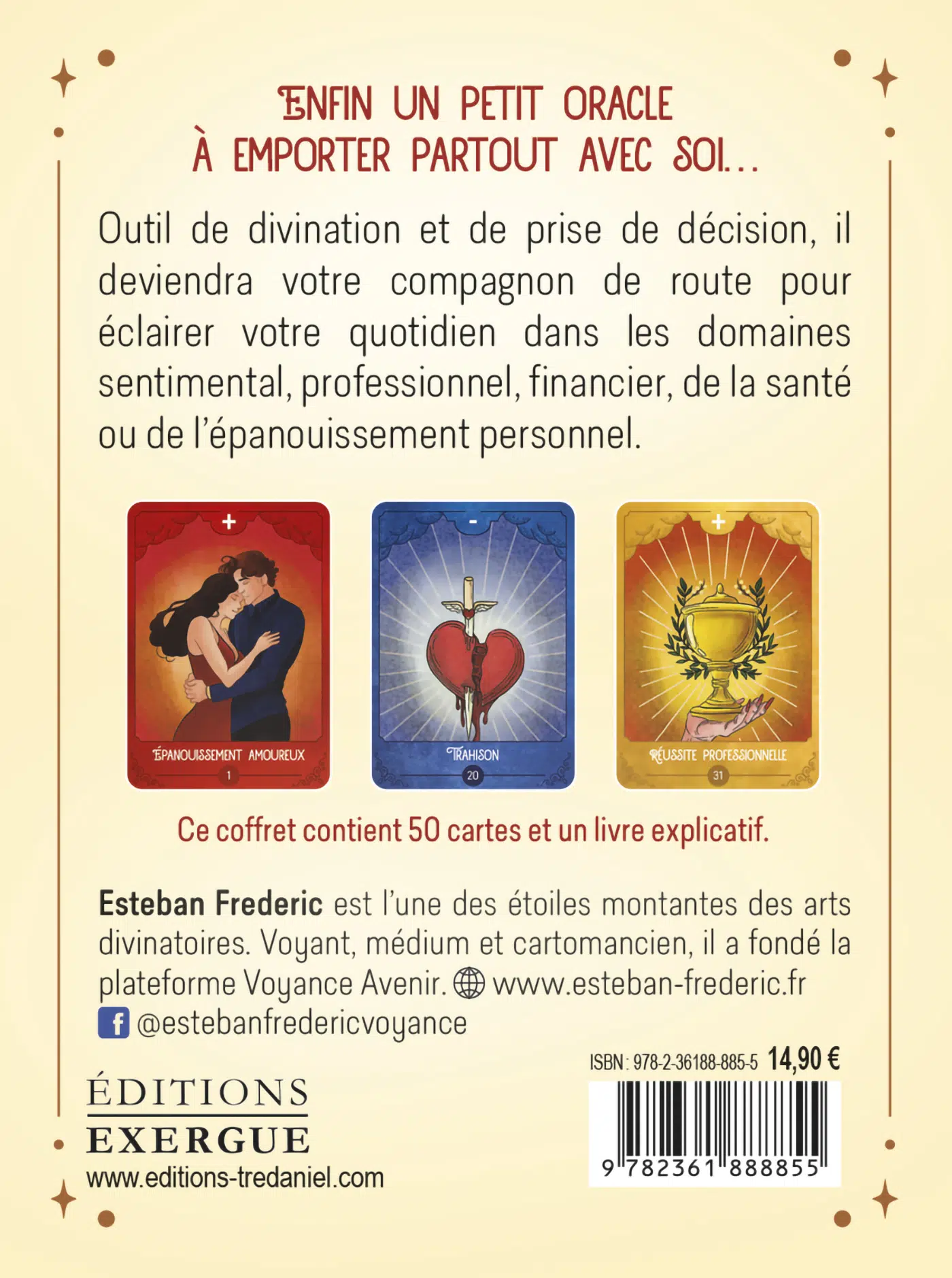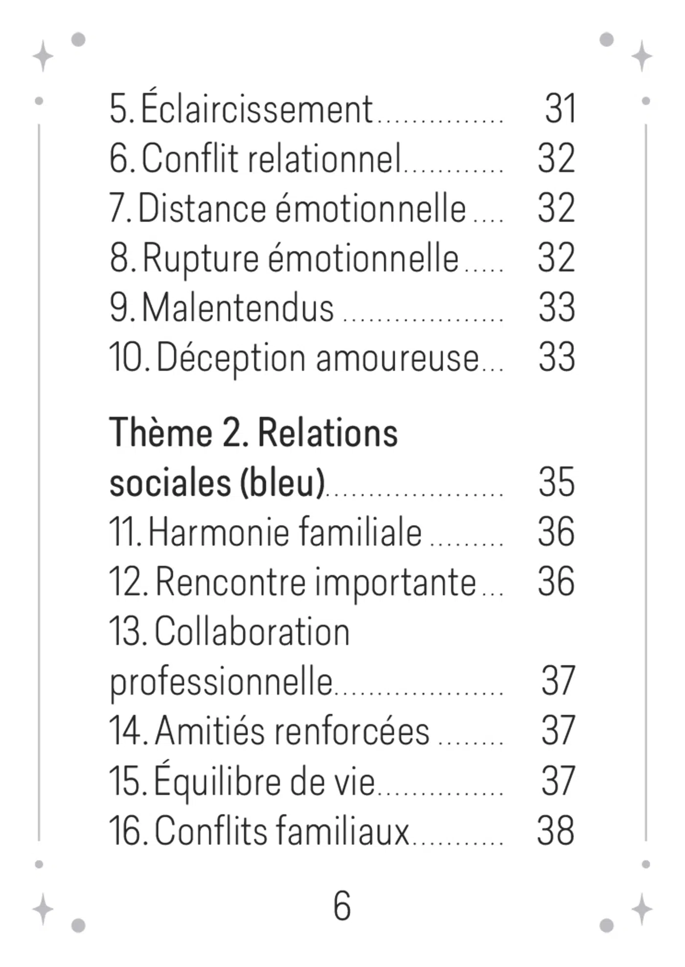 Outil de divination et de prise de décision, il deviendra votre compagnon de route pour éclairer votre quotidien dans les domaines sentimental, professionnel, financier, de la santé ou de l’épanouissement personnel.