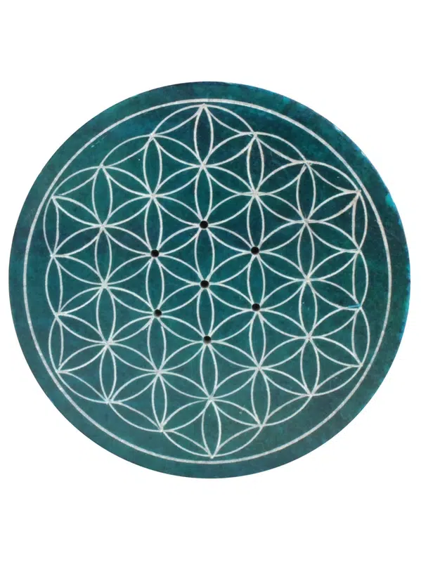Ce porte encens en Stéatite ("pierre de savon") est percé de 7 trous en son centre, afin de pouvoir y placer des bâtons d'encens (à la verticale).