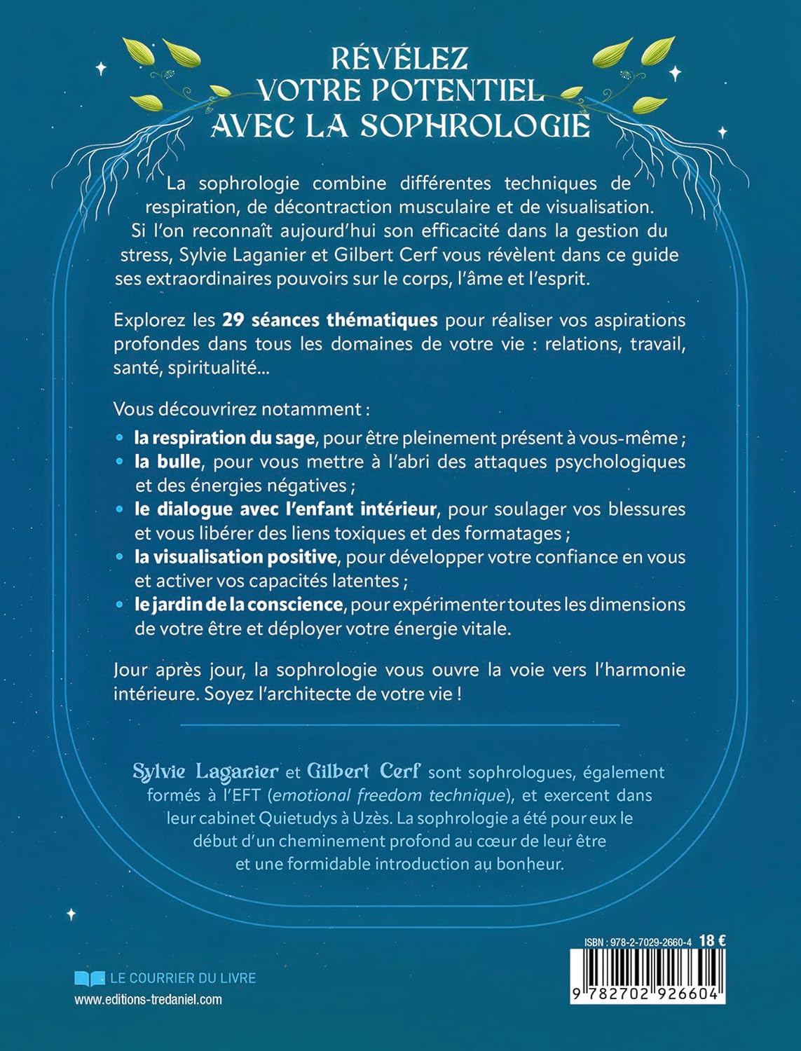 La sophrologie combine différentes techniques de respiration, de décontraction musculaire et de visualisation. Si l'on reconnaît aujourd'hui son efficacité dans la gestion du stress, Sylvie Laganier et Gilbert Cerf vous révèlent dans ce guide ses extraordinaires pouvoirs sur le corps, l'âme et l'esprit. Explorez les 29 séances thématiques pour réaliser vos aspirations profondes dans tous les domaines de votre vie : relations, travail, santé, spiritualité…