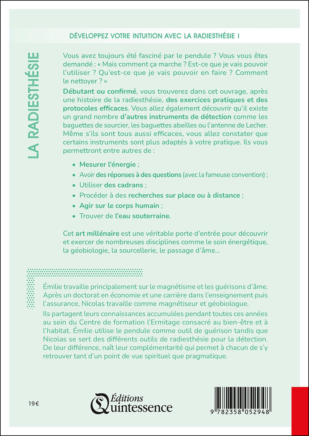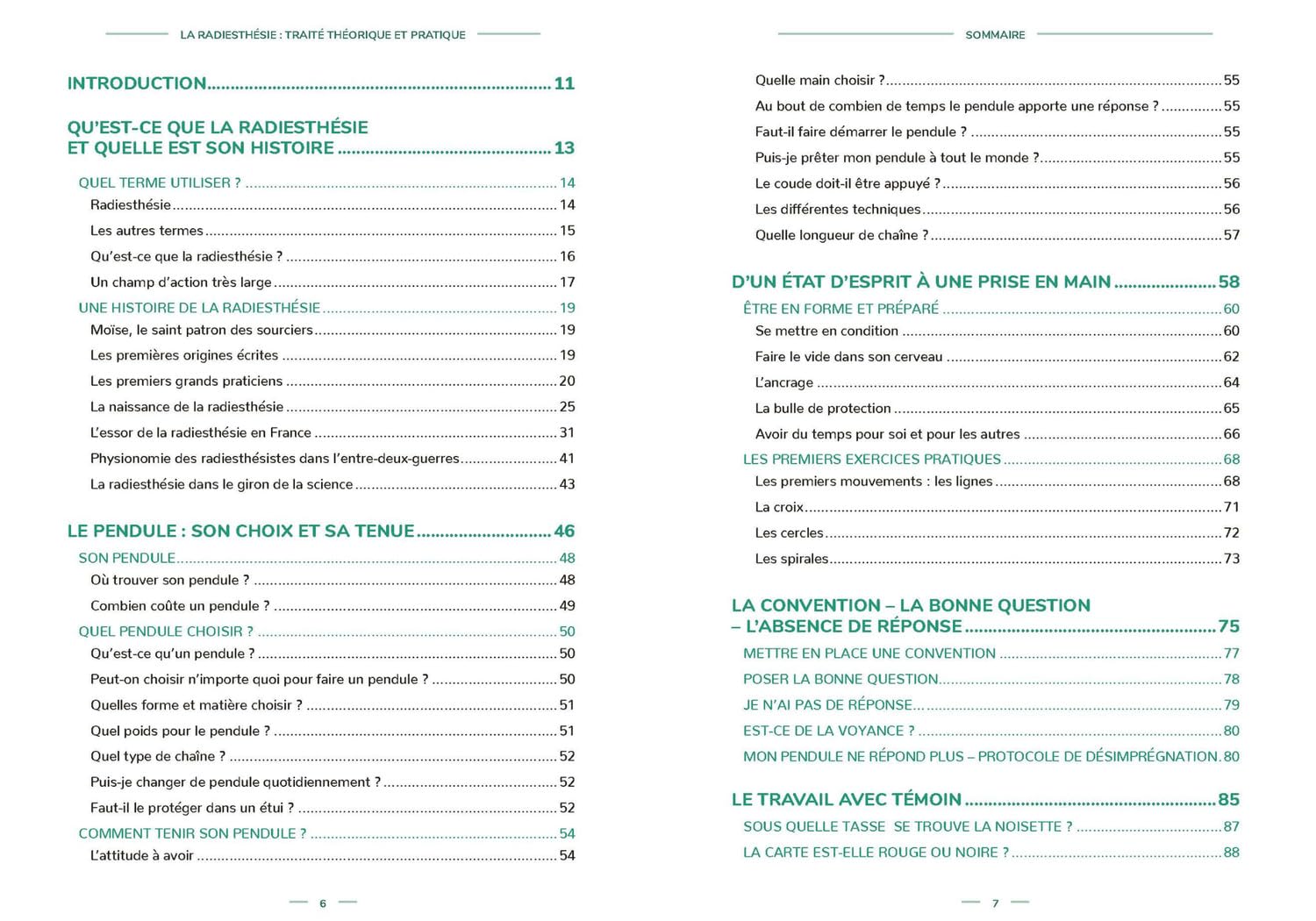 Débutant ou confirmé, vous trouverez dans cet ouvrage, après une histoire de la radiesthésie, des exercices pratiques et des protocoles efficaces à réaliser avec le pendule et d’autres instruments de détection comme les baguettes de sourcier, les baguettes abeilles ou l’antenne de Lecher. Vous pourrez :