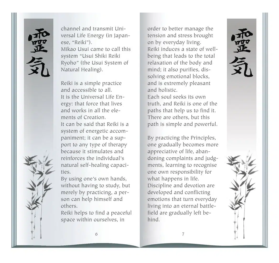 Le reiki est une pratique qui stimule l'auto-guérison profonde et naturelle à tous les niveaux de l'être : physique, émotionnel, mental, spirituel. Les cartes Reiki s'inspirent des principes et des Symboles du Reiki de la tradition Usui Shiki Reiki Ryoho.