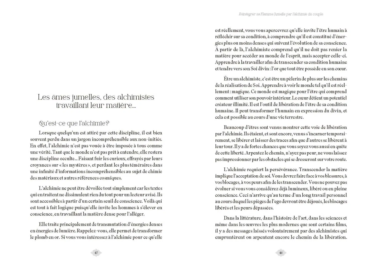 Deux êtres qui s'aiment passionnément sont bien plus qu'ils ne paraissent. L'amour les porte, les régénère, les met sur un chemin d'âme à âme. L'Amour est la force la plus puissante de l'Univers, il conduit à la libération et la guérison.